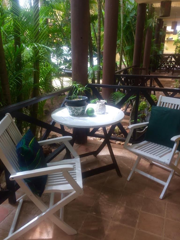 Aconchegante, ventilada e bem iluminada, situada em "Villa La Ribera" um condomínio de 3 casas com amplo quintal, cheio de paz e natureza. Dispõe de ar condicionado, boa internet, escritório com cadeira ergonômica, varanda com mesa, sala com sofá cama, cozinha equipada, 1 banheiro, 1 quarto, 1 pequeno quintal privado e muito conforto ❥ Fica a: 200M da padaria 500M do principal atacarejo 800M da Praia do Amor e do centro Ideal para quem procura um lugar tranquilo, porém de fácil acesso a tudo!