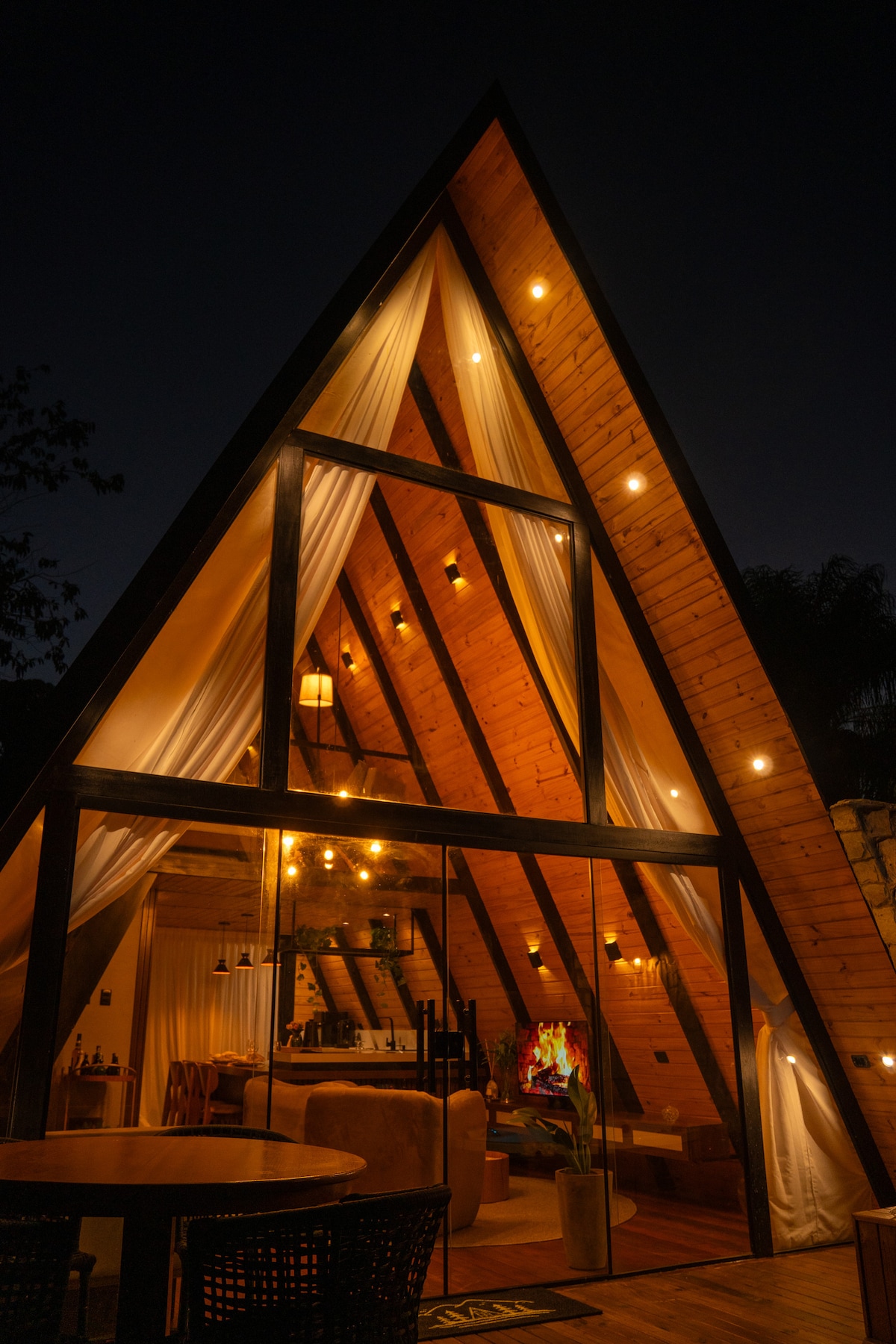 Sua escapada romântica perfeita começa aqui! A única cabana A-Frame de Pipa, a só 6 minutos do centro de carro. hidromassagem até 40 graus, cama queen, ar 16mil btus, cozinha completa, tudo da melhor qualidade, e muito charme. Ideal para casais que buscam conforto, privacidade e natureza. Pet friendly de verdade, com espaço cercado, todos os tamanhos e raças são bem-vindos. Estacionamento coberto, portão automático e segurança total.🌴💫 Reserve e se apaixone! *consulte bem-vinda romântica🏕️🥰