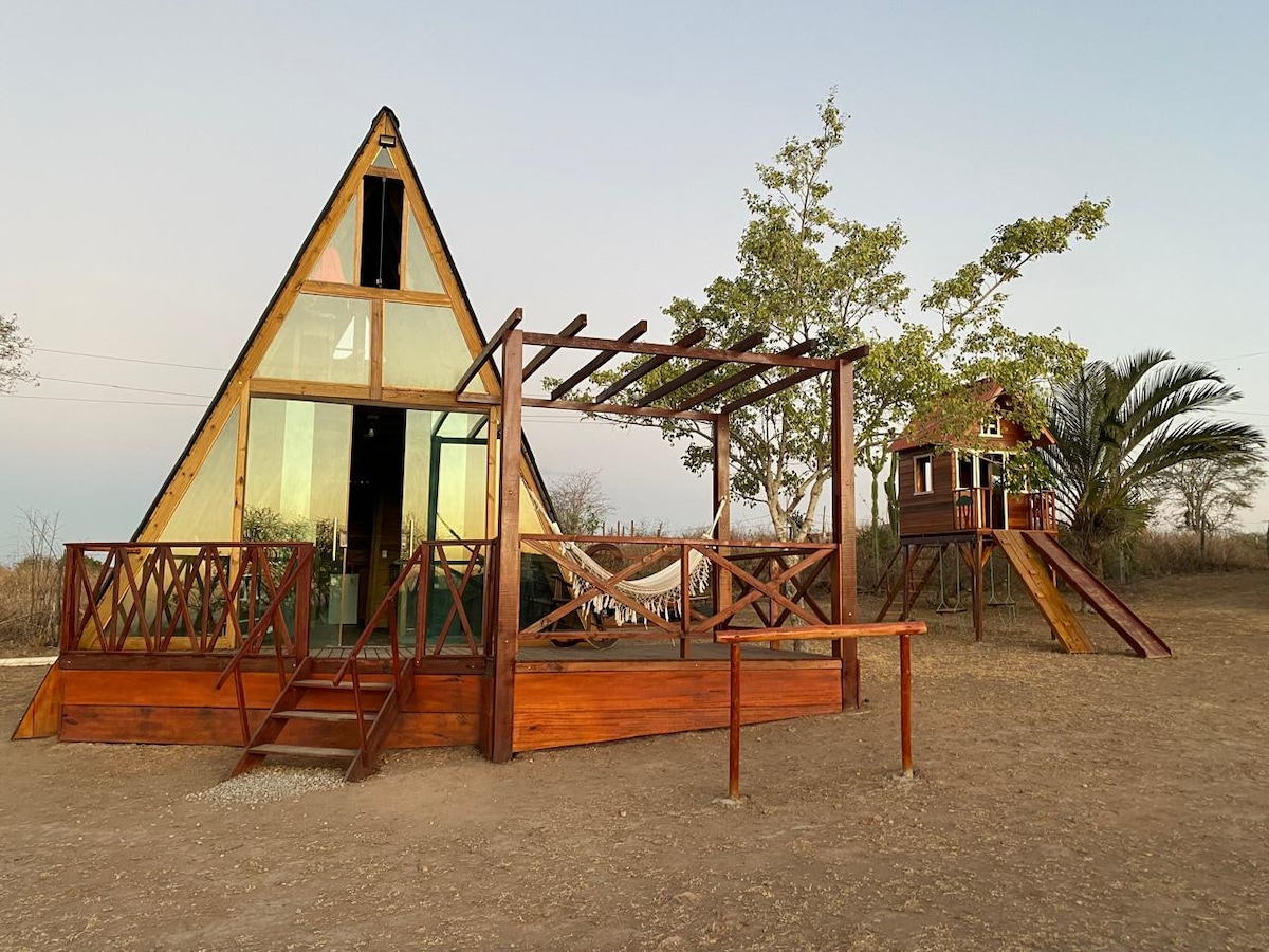 Sua escapada romântica perfeita começa aqui! A única cabana A-Frame de Pipa, a só 6 minutos do centro de carro. hidromassagem até 40 graus, cama queen, ar 16mil btus, cozinha completa, tudo da melhor qualidade, e muito charme. Ideal para casais que buscam conforto, privacidade e natureza. Pet friendly de verdade, com espaço cercado, todos os tamanhos e raças são bem-vindos. Estacionamento coberto, portão automático e segurança total.🌴💫 Reserve e se apaixone! consulte boas vindas romântica🏕️🥰
