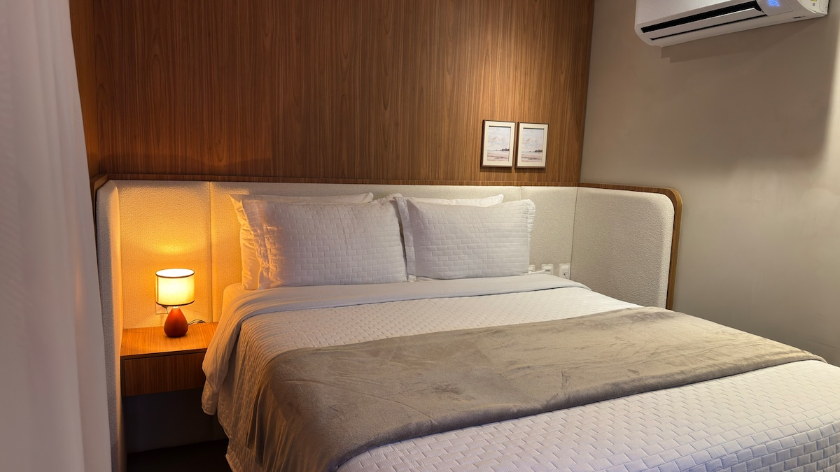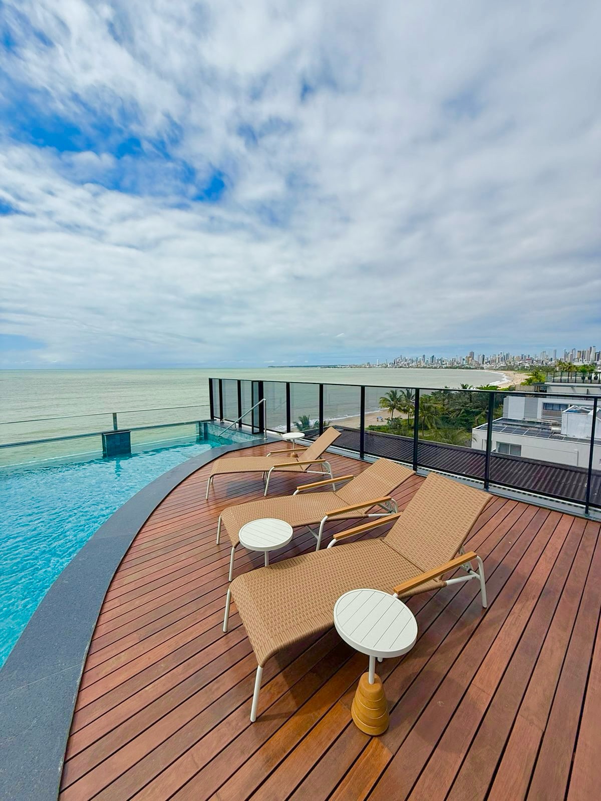 ✨ Conforto total: limpeza diária já no pacote! 💎 Surpreenda-se com um refúgio romântico à beira-mar, em Tambaú, onde cada detalhe foi pensado para encantar. Nosso flat oferece um padrão de luxo e conforto ainda superior à suíte mais exclusiva do próprio Nobile Suites, com cama king-size aconchegante, Smart TV de 65”, sofá-cama amplo, frigobar e utensílios para refeições práticas. Um espaço elegante, ideal para brindar ao amor com a vista mais desejada de João Pessoa.