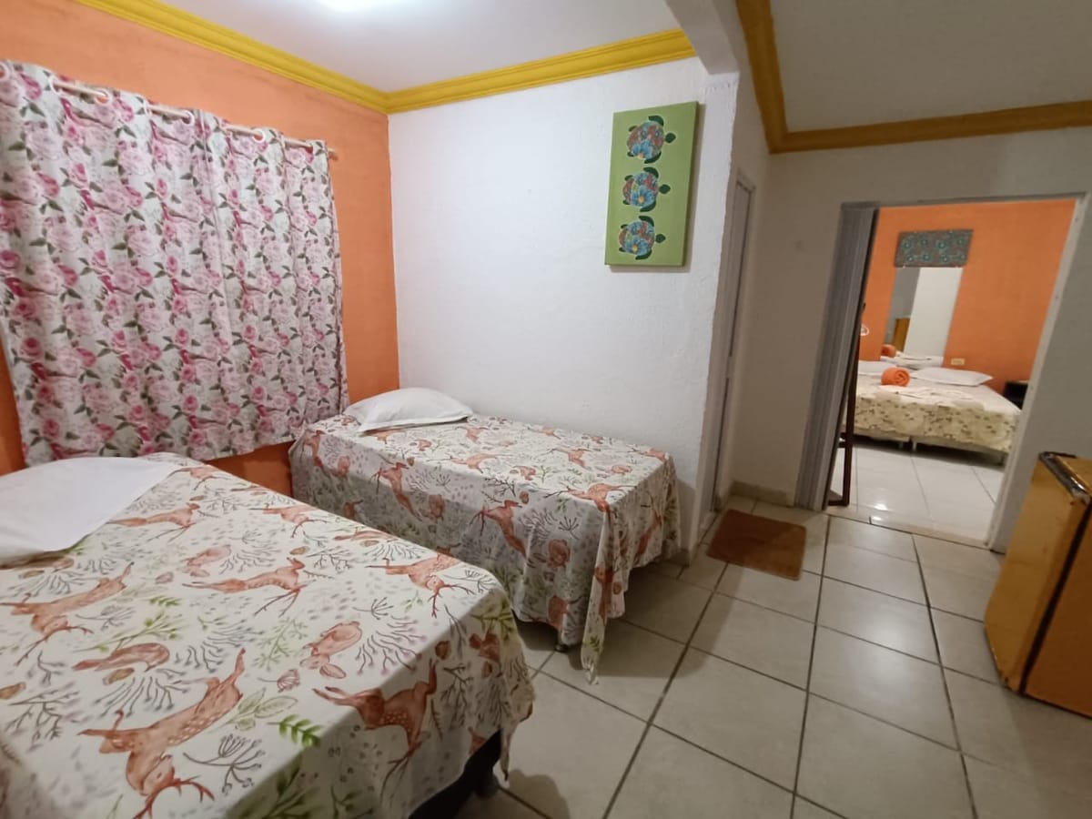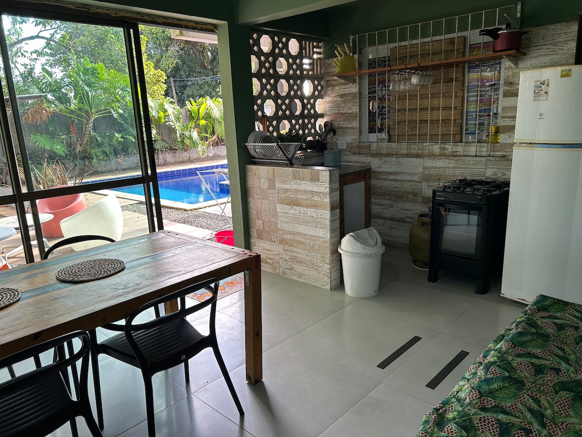 Você vai adorar este charmoso lugar cheio de estilo e muita natureza. Sua quitinete dispõe cama para duas pessoas, BANHEIRO PRIVATIVO, ar condicionado, pia, frigobar, sanduicheira e pequeno fogão para refeições rápidas como café da manhã e lanche da noite. Disponível ainda lençóis, toalhas de banho, travesseiros e itens de Mini cozinha para pequenas refeições. Ideal para uma ou duas pessoas. Próximo a praia, padaria e mercadinhos.