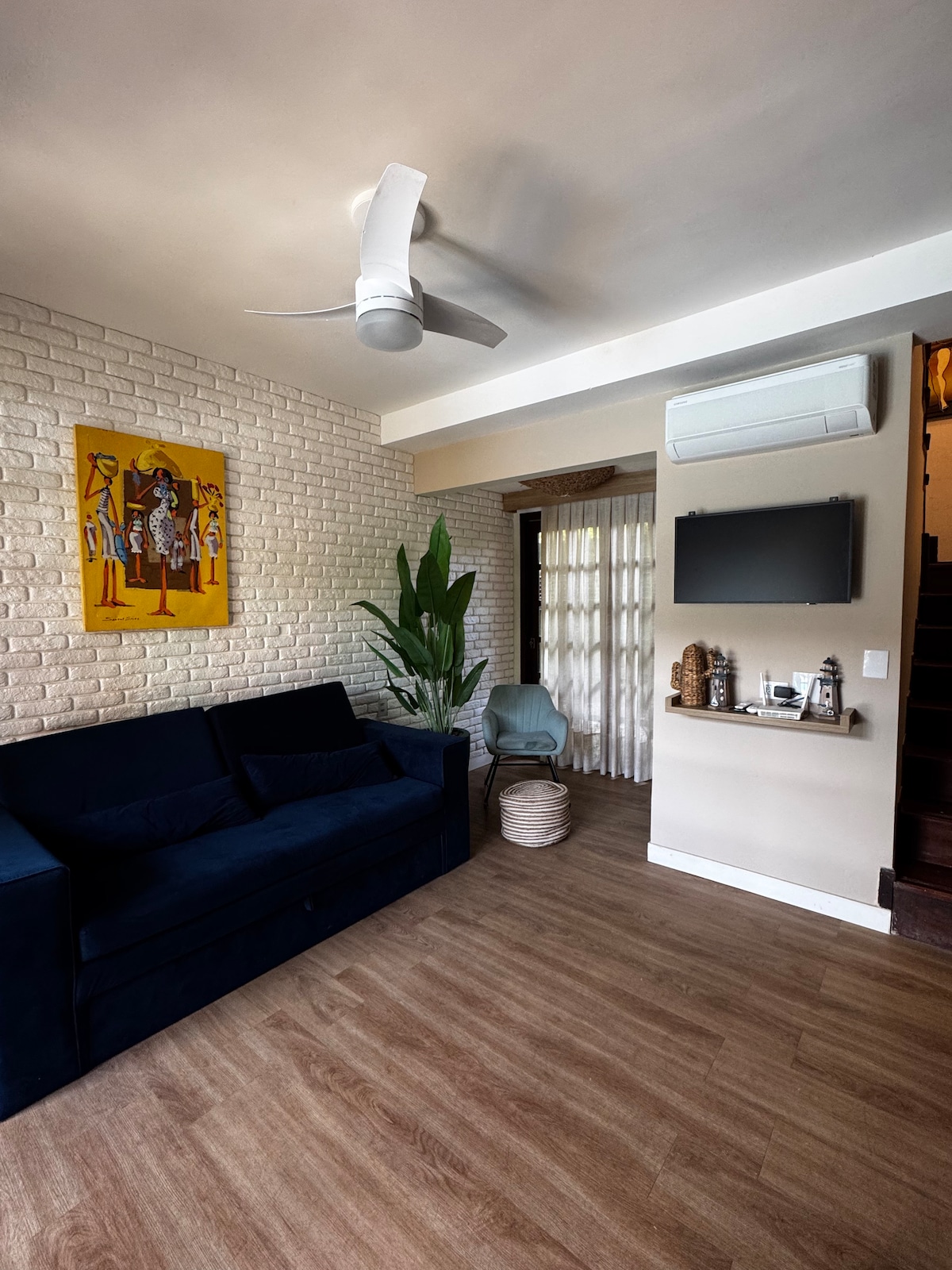 Relaxe com toda a família nesta acomodação tranquila. Casa triplex em condomínio fechado em Pipa! Localizado próximo à av. Dos Golfinhos, a 4min à pé do centro de Pipa. Possui sala, cozinha equipada, duas suítes com ar-condicionado (uma com cama King e outra com cama de casal e cama de solteiro) e um sofá-cama na sala, também com ar-condicionado. Condomínio é pet friendly. OBS: Observar as regras da casa.