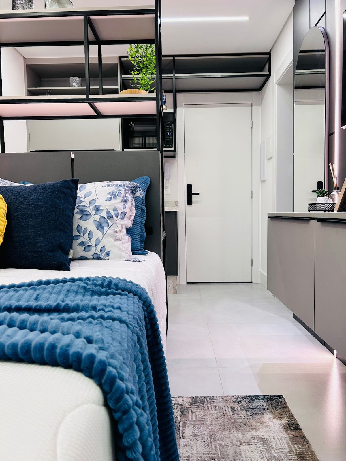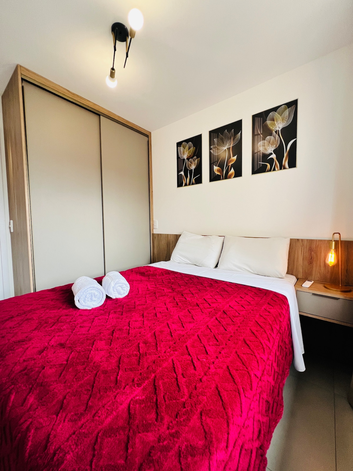 Apartamento aconchegante no Batel, ideal para quem busca conforto e praticidade em Curitiba. Conta com cozinha equipada (mesa de jantar, geladeira, cooktop e micro-ondas), quarto com cama de casal e bancada de trabalho, além de sofá-cama queen. Ar-condicionado quente/frio, blackout para noites tranquilas e ótima localização perto de mercados, farmácias, shoppings e restaurantes, com fácil acesso para quem está sem carro.