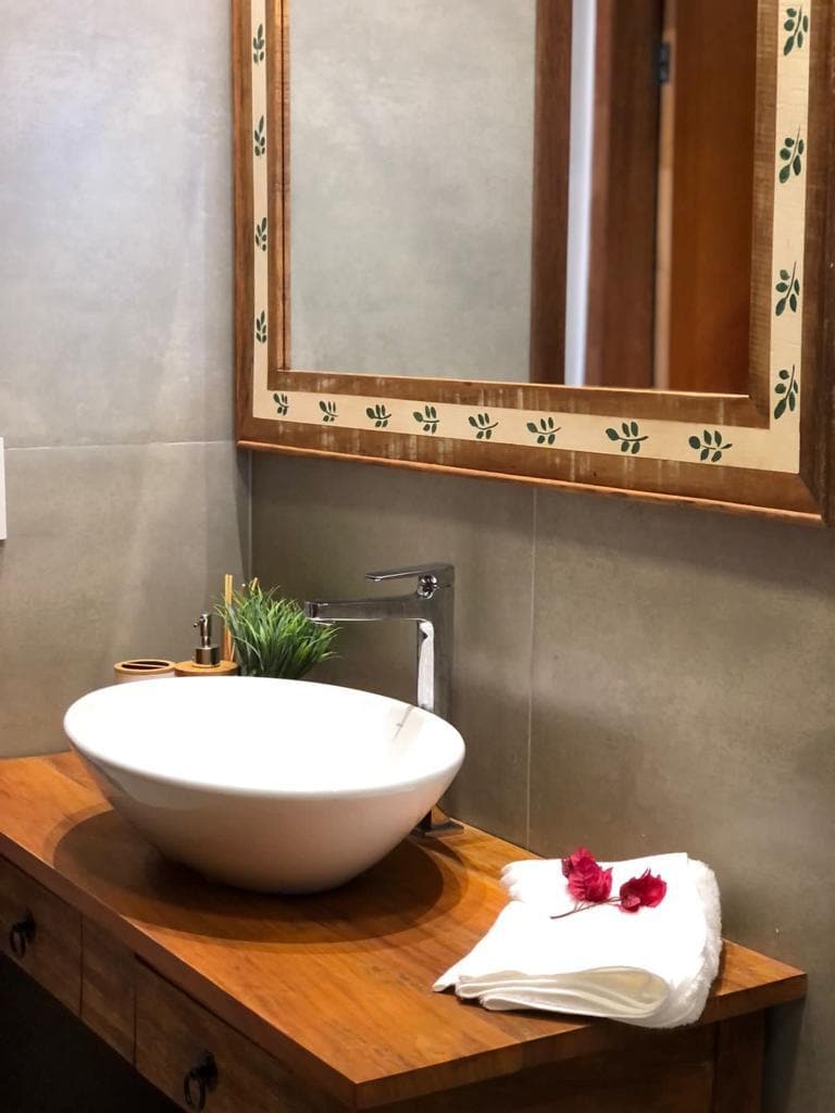 Chalé (21m²), localizado no jardim da pousada, próximo a piscina. • Quarto: Cama box e ar split. Quando a reserva é para 3 pessoas, colocamos um colchão. • Sacada: 1 mesa e 2 cadeiras. • Banheiro com chuveiro, não tem banheira de hidromassagem. • Sem cozinha interna, há uma cozinha compartilhada na área da piscina. • Há escadas da garagem até o chalé. • Wi-Fi, TV a Cabo, WC privativo e enxoval completo. • Café da Manhã opcional: R$25,00/pessoa/dia. • Aceitamos pets, taxa pet de R$30,00/dia.