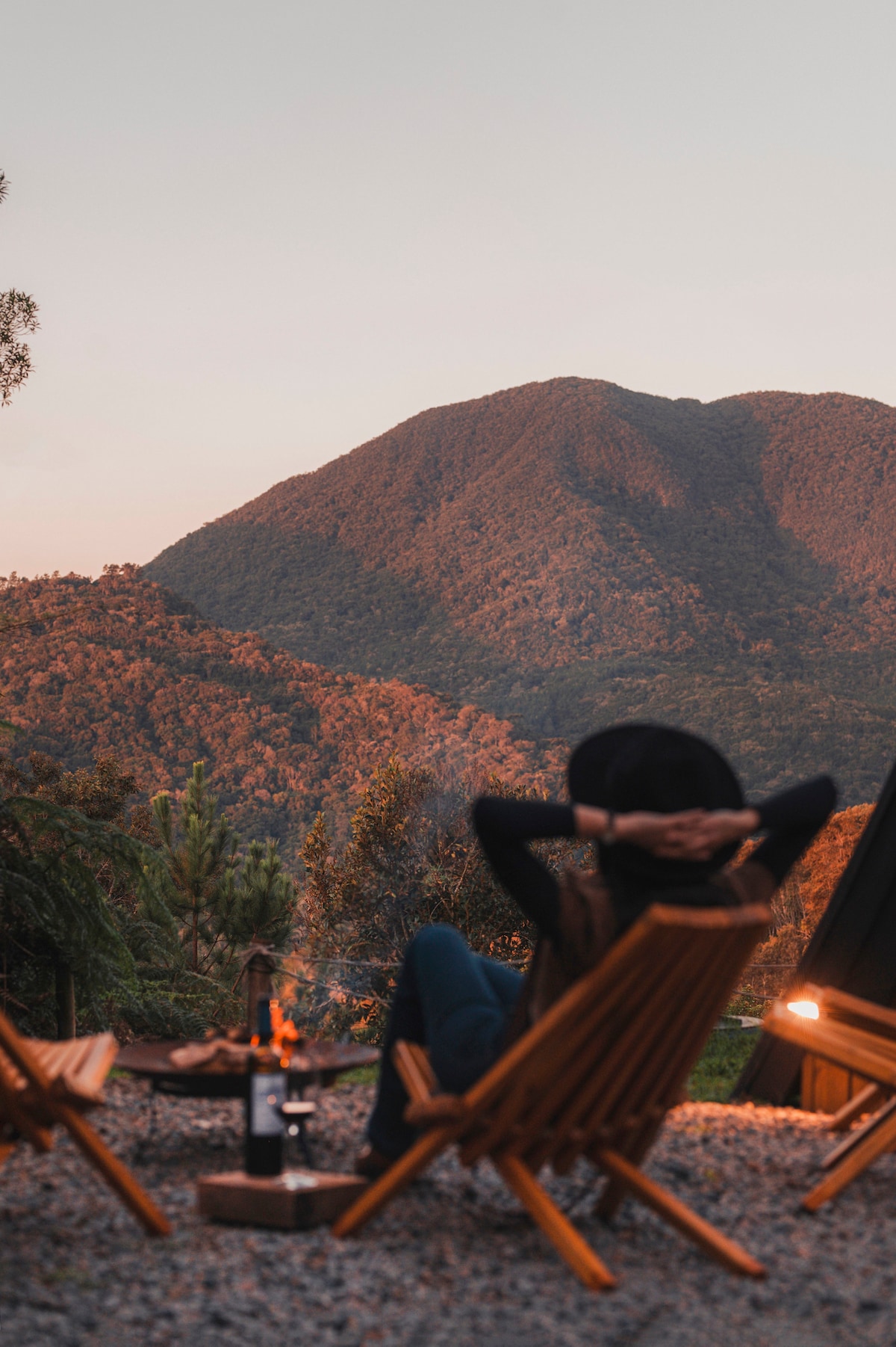Feita por nós, está integrada a natureza e possui uma vista incrível, ideal para ver o nascer da lua e o pôr do sol, ficar a toa na banheira, no sofá ou debaixo de uma árvore, ela possui uma cama de casal e um sofá cama, frigobar, fogão, chuveiro e banheira de imersão a gás, tem churrasqueira e local para fogueira ao lado. Do estacionamento até a cabana tem uma subida de 50m, possui uma escada Santos Dumont inclinada para acesso ao segundo piso. Temos um mercadinho exclusivo para hóspedes.