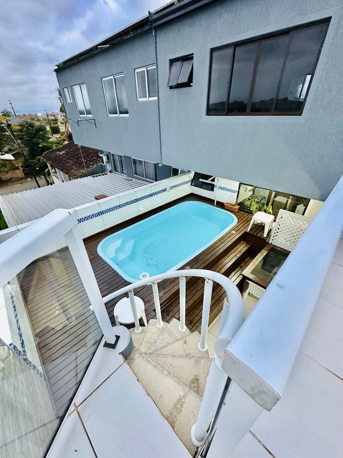 Casa cinza: piscina climatizada