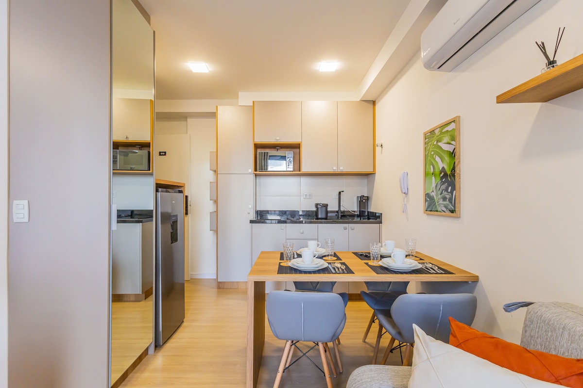 Essa acomodação é projetada e decorada com muito carinho e cuidado, e cada detalhe foi pensado para deixar sua estadia mais gostosa. É um espaço perfeito para quem está procurando um cantinho para curtir em meio a natureza ou até um espaço para seu home office. Possui janelas amplas, com deck em frente, que dão vista incrível para o nascer do Sol.