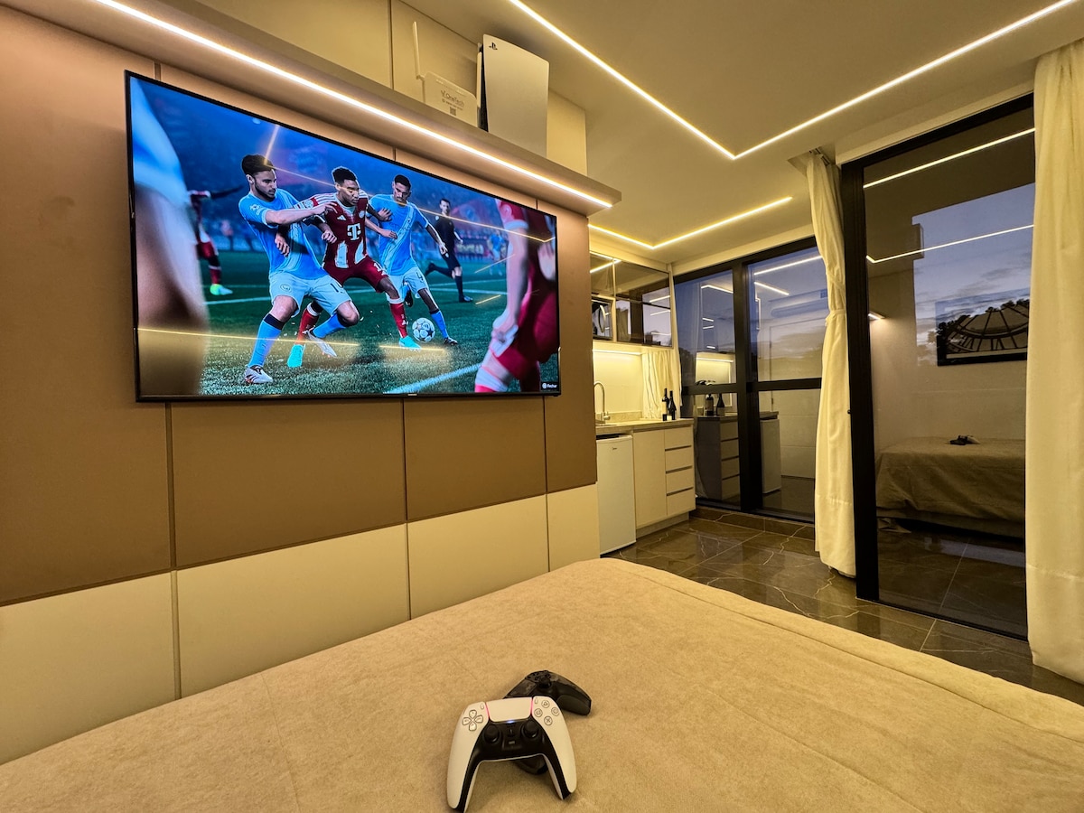 No Studio Gamer Stay, o jogo nunca para. No coração do Batel, feito para quem ama relaxar e viver experiências únicas. Aqui, você joga Play 5 com FIFA, GTA e os melhores jogos em uma TV gigante, dorme em uma cama espaçosa e aproveita uma cozinha completa. Usufrua do melhor de Curitiba em um prédio moderno com rooftop panorâmico, churrasqueira, portaria e mercado 24h.