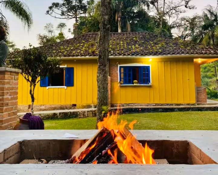 Neste pequeno paraíso, que já foi palco de cenas para dois filmes, você vai poder relaxar e confraternizar com sua família e amigos. Vai sentir-se confortável em fazer suas refeições ao ar livre ao som do chafariz ou debaixo das árvores. Acessibilidade com rampa. A tela divide o espaço entre a mata e a casa dando segurança aos seus pets. A trilha leva a uma imersão na mata🌿 e o jardim com as abelhinhas sem ferrão. Piscina tamanho família. Em dias de frio a lareira vai aquecer a casa e seu ❤️!