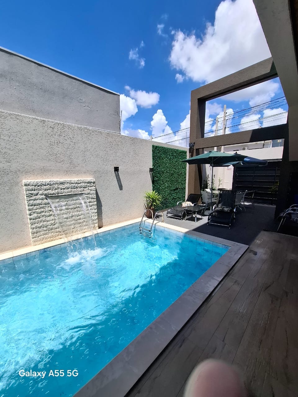 Suíte (Studio) com amplo espaço, sacada, privado, self check-in (cofre chaves) ar condicionado, frigobar, microondas, internet, Smartv, guarda roupa, cama casal e cama solteiro, região central de Umuarama, prox a bancos, panificadoras, mercados, farmácias, 2° andar com escadas e estacionamento na rua, regulamentado horário comercial zona Azul, app vago.