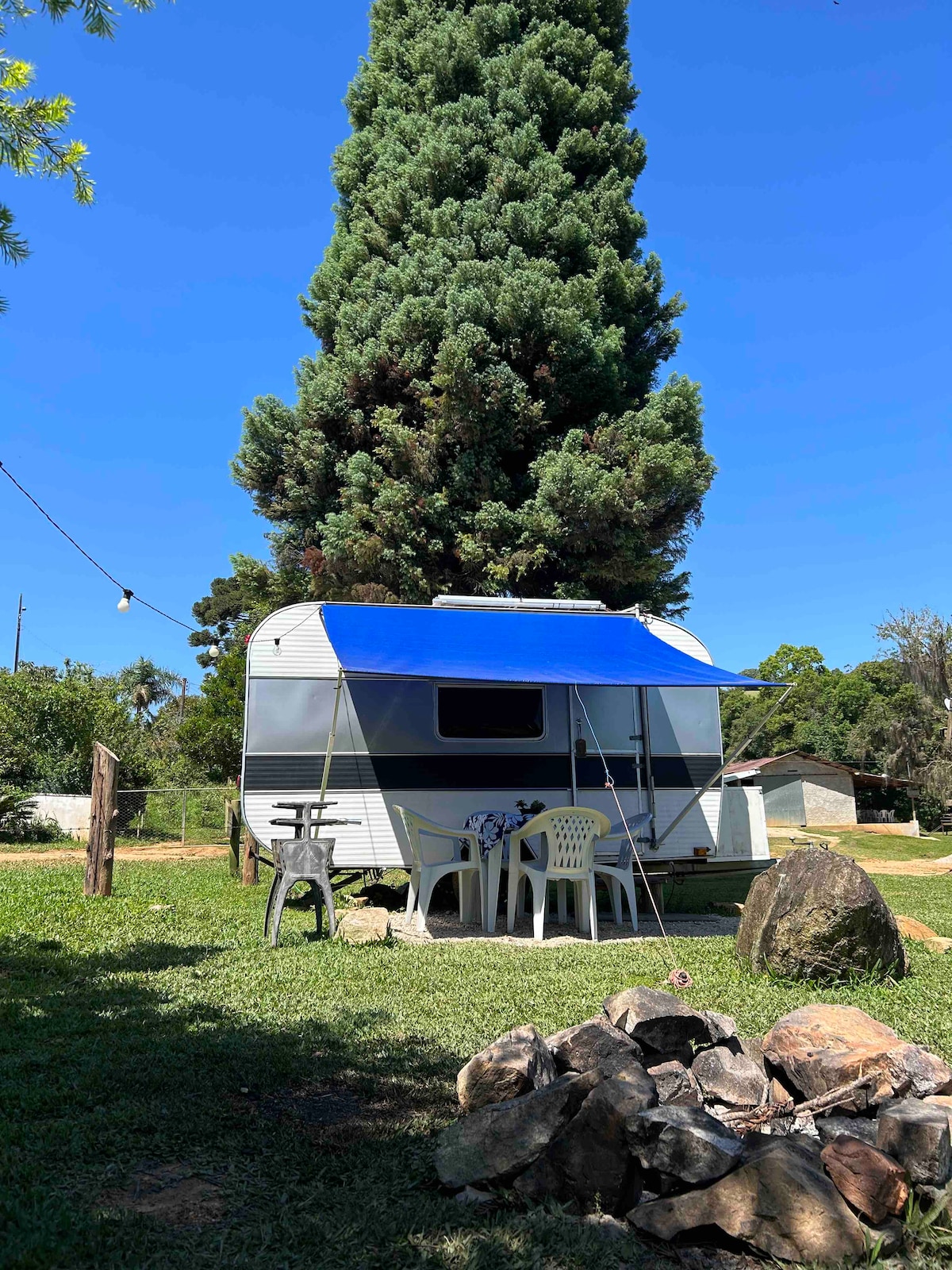 🌱 Hospede-se em um trailer de luxo totalmente equipado em meio à natureza! 🚐 ✅Cama de casal confortável, sofá-cama, ar-condicionado, TV, cozinha completa com utensílios, geladeira, micro-ondas e fogão. Banheiro privativo com aquecimento a gás e toalhas inclusas. 🔥Área externa com churrasqueira, kit praia e espaço para fogueira. 🧺Roupa de cama, produtos básicos e estacionamento inclusos. Um refúgio aconchegante, cercado por árvores e tranquilidade, pronto para você aproveitar.