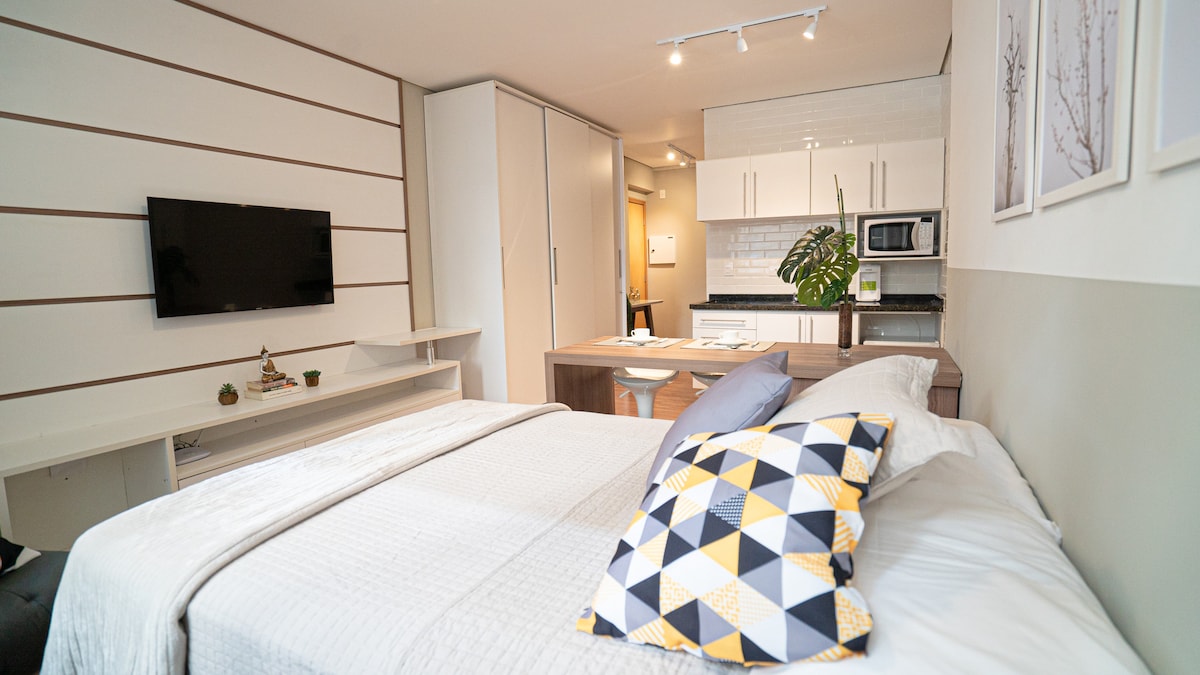 Studio moderno e totalmente equipado. Está em excelente localização, próximo aos melhores Shoppings, restaurantes, centro comercial, diversos pontos turísticos e esportivos e parques ecológicos da cidade. Fácil acesso ao transporte público e vias de acesso. Espaços de convivência na parte externa foram pensados para proporcionar à você uma estadia agradável e inesquecível inclusive uma cafeteria 24hrs nos FDS Meu espaço é bom para casais ou para solteiros, assim como para viajantes de negócios.