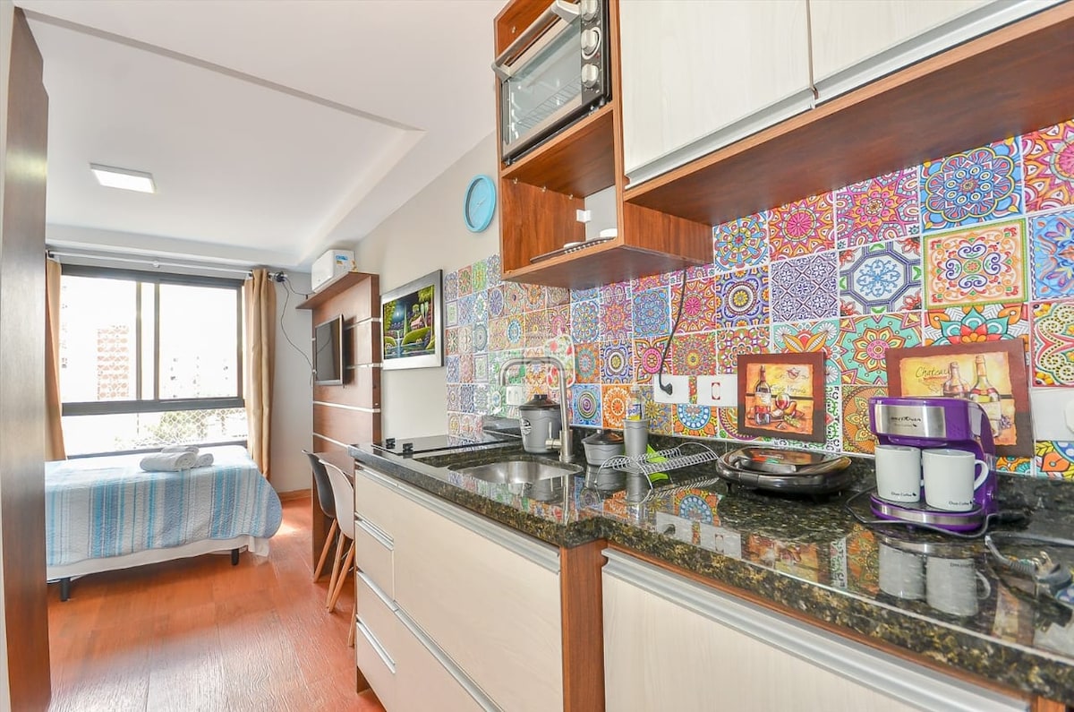 Studio novo e confortável no coração da cidade. Recepção 24 hrs, café/restaurante, coworking, academia, lavanderia, e locação de bicicletas - tudo isso no próprio condomínio. Localização ideal para turismo e negócios. Fácil acesso a rodoviária e aeroporto, linha de ônibus turismo, do ladinho da icônica Rua XV, shoppings, teatro Guaíra, Universidade Federal, além da proximidade ao Estádio Couto Pereira e Pedreira Paulo Leminski/Ópera de Arame, que recepcionam os grandes shows.