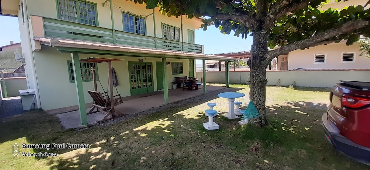 Casa Simples e bem localizada, a regra é relaxar e curtir a natureza, pois a Praia do Ervino ainda é uma das poucas praias : Limpa, preservada e com muita extensão de Areia para aproveitar .... temos um amplo pátio aonde você pode trazer seus Pets e crianças para aproveitar ! Temos 3 quartos no segundo piso, 1 quarto no sótão e 1 suite na parte térrea , disponibilizamos mais 1 sofá cama solteiro e 2 colchões solteiro .