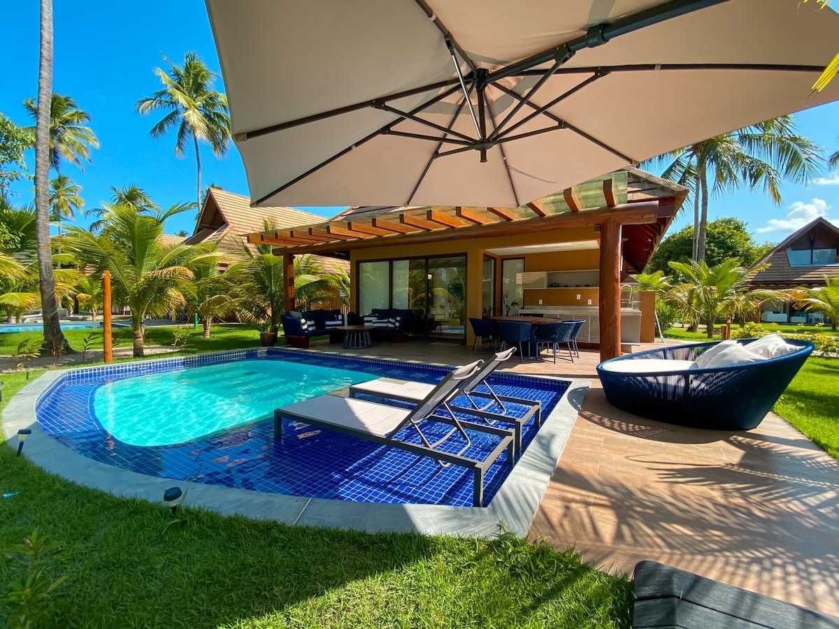 Condômino de alto luxo no mais bajulado trecho do litoral pernambucano com excepcionais áreas de convivência totalmente decoradas com o melhor do mobiliário local, porém preservando um ambiance tropical e de rusticidade. Exibindo uma nítida valorização do verde, tendo como prioridade um belíssimo projeto paisagístico emoldurando todas as edificações. Os bangalôs possuem piscinas exclusivas e terraços amplos e confortáveis com estacionamento privativo e de fácil acesso. Ambiente Familiar