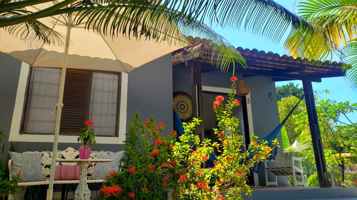 Chalé muito bem localizado: próximo as dunas do pôr do sol, à 400 m da praia e à 5 minutos a pé da rua principal. Bastante arejado e tranquilo, o chalé é ideal para casais ou para uma família pequena que queira aproveitar da natureza com muito charme, conforto e tranquilidade. O chalé tem sua entrada independente mas divide terreno com o chalé do lado que também tem sua própria entrada .