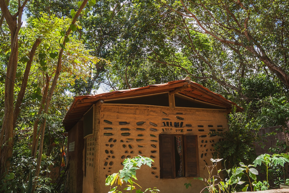 Come and experience reenergizing yourself in the tranquility of the forest! Cozy Bioconstruction with clay, cool and silent. fan, hammock and extra single mattress. large garden separating the houses, delicious pure water from a deep well with a hot shower. Safe neighborhood, next to the ecological sanctuary with butterflies, birds and monkeys, to sleep with the crickets!