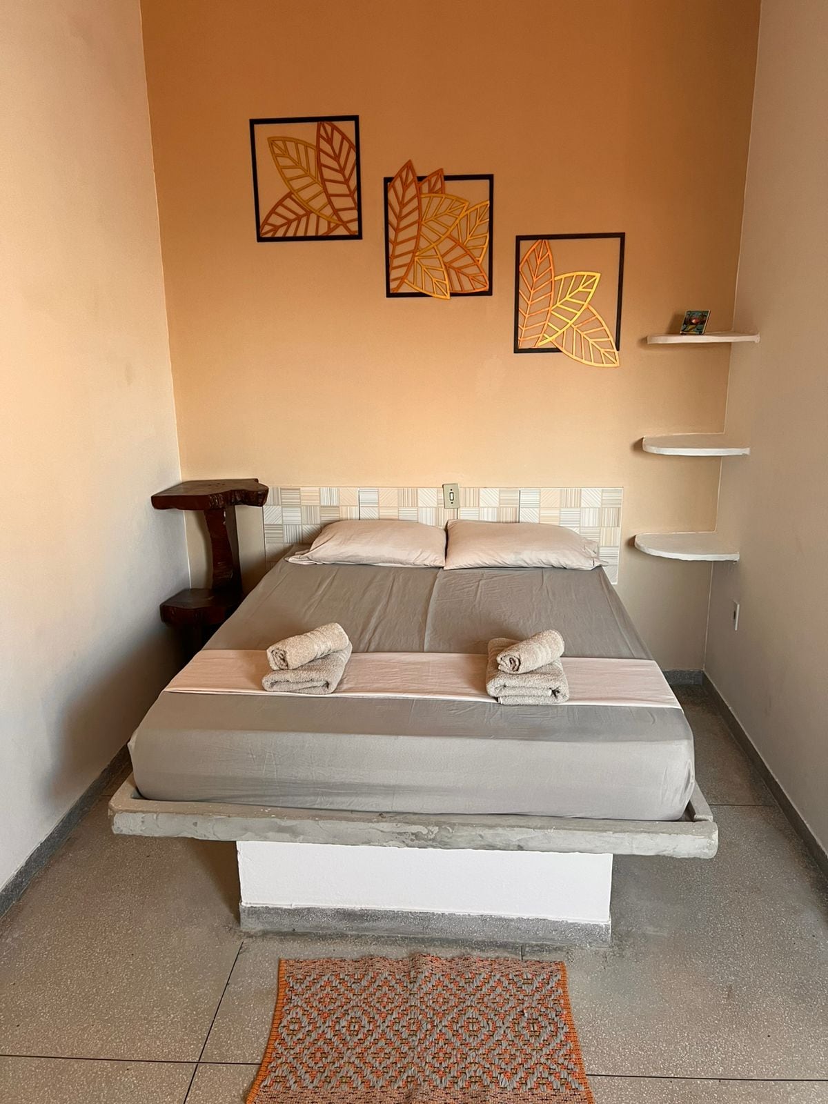 Desperte com a sinfonia dos pássaros em nosso quarto duplo mais encantador! Espaçoso e com o cantar da natureza como sua trilha sonora pessoal, este é o refúgio perfeito para casais ou viajantes que buscam conexão autêntica com Barra Grande. Seu Cantinho Inclui: Cama confortável Ventilador, espelho e cabideiro Viva a Experiência Completa: Banheiro compartilhado (sempre impecável) Cozinha totalmente equipada Áreas comuns que convidam a novas amizades Café da manhã caseiro do Abel incluído