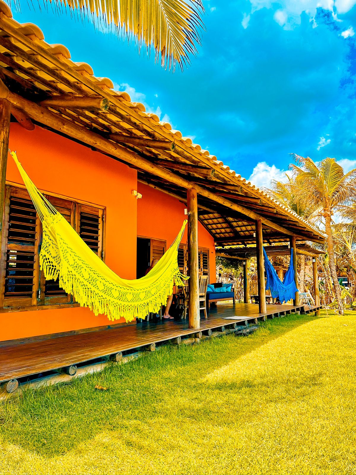 We are proudly renting our holiday home in Praia de Redonda, Icapui. Located, right above the beach, with a spectacular panoramic ocean view. A quiet location in direct contact with nature, to relax and recharge your batteries. Our house lays on huge 530 m² garden with palms, fruit trees and hammocks waiting for you. Only a 10 minute walk from the beach down the hill. We provide fresh bed linen, towels, a fully equipped kitchen and private parking area for your car.