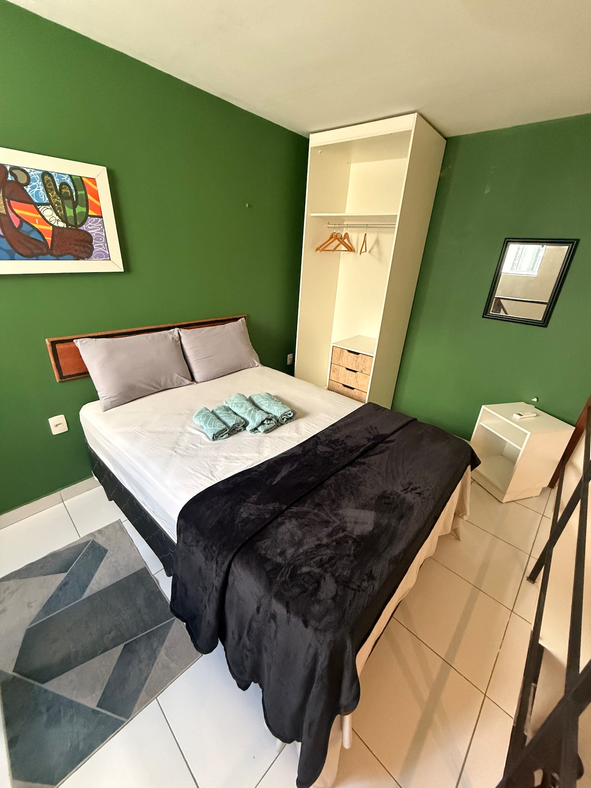 Ideal para quem precisa de internet rápida, localização muito boa ficando próximo do centro praia da Xepa e praia do Maceió , cozinha equipada com frigobar 127 l, fogão 2 bocas, liquidificador, sanduicheira, ar condicionado 12 mil btus, cafeteira dolce gusto, tv smart, cofre e estacionamento. O espaço com cama queen no mezanino e um sofá cama na sala. Banheiro com chuveiro elétrico e secador de cabelo já vem jogo de toalhas de banho e cama. Varanda com cadeira de balanço e espreguiçadeira.