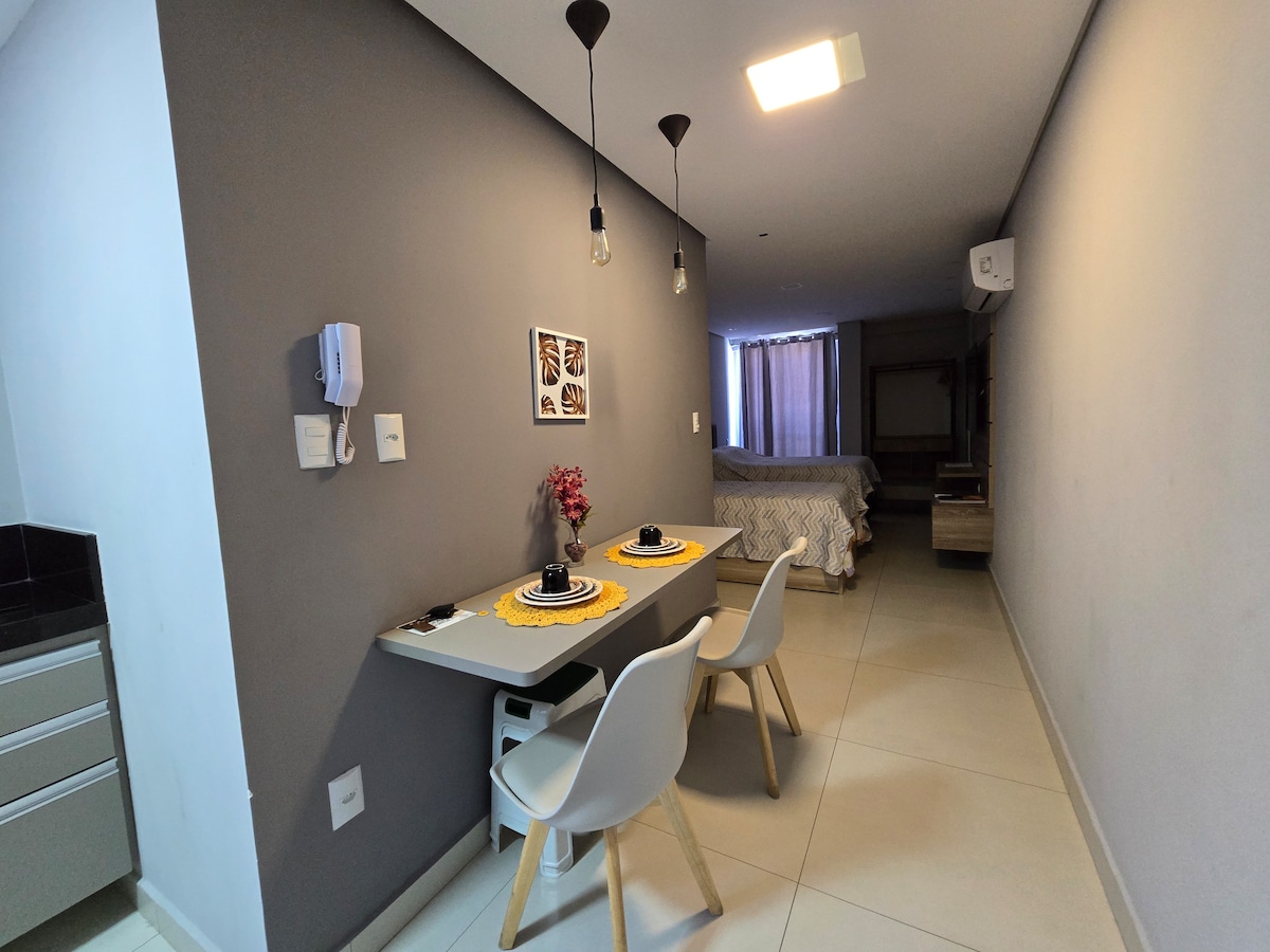 Um loft funcionou com todo requinte para uma estadia tranquila e agradável, Tv com Netflix, Cozinha com utensílios domésticos para preparar suas refeições, ao lado de padarias, supermercados e farmácias. Atenção PISCINA está indisponível de 02/03 á 15/03/2026. Temos portaria 24 horas, o check-in é feito direto na portaria a qualquer hora após às 15:00hs, mediante cadastro feito antecipadamente pelo anfitrião. OBS.: Não disponibilizamos sabonete em barra apenas sabonete líquido.