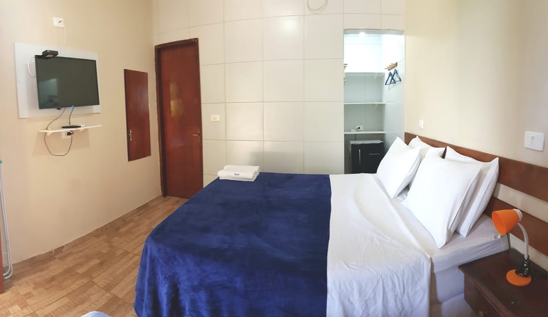 O espaços quartos suítes de pousada com entrada externa sem compartilhar absolutamente nada entre hoapedes ou funcionários. Temos estacionamento interno e o melhor custo benefícios de longo prazo da região, leia nossas classificações para entender melhor o que os hóspedes compartilham. ficamosngrato pela preferência. Pousada Salsamba