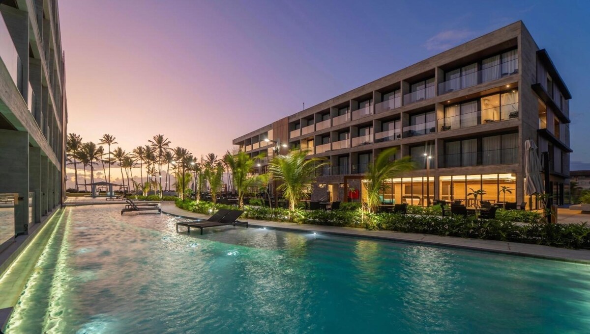 Up to 4 guests! Pet Friendly! Muro Alto/Porto de Galinhas, facing the natural pools with exclusive beach access. Comfortably accommodates up to 4 guests. Located in the best area of Muro Alto, with calm, crystal-clear waters perfect for families and children. • 1 queen bed + cozy sofa bed. • Accepts up to 2 small pets (extra resort fee per stay). • Pools, spa, sauna, gym, 24h restaurant, and daily activities for adults and children. • Parking included.