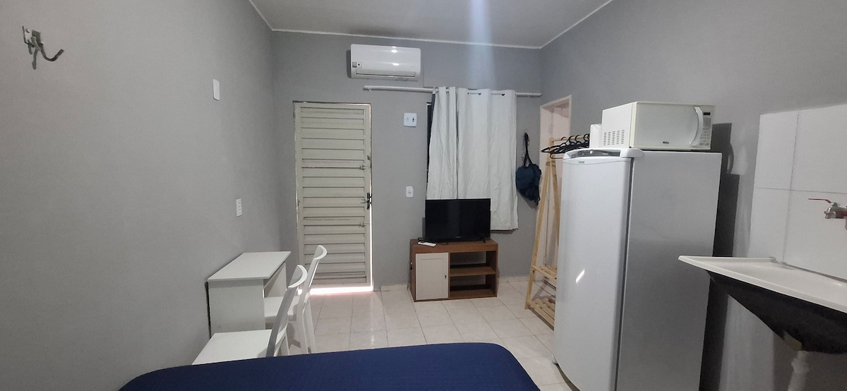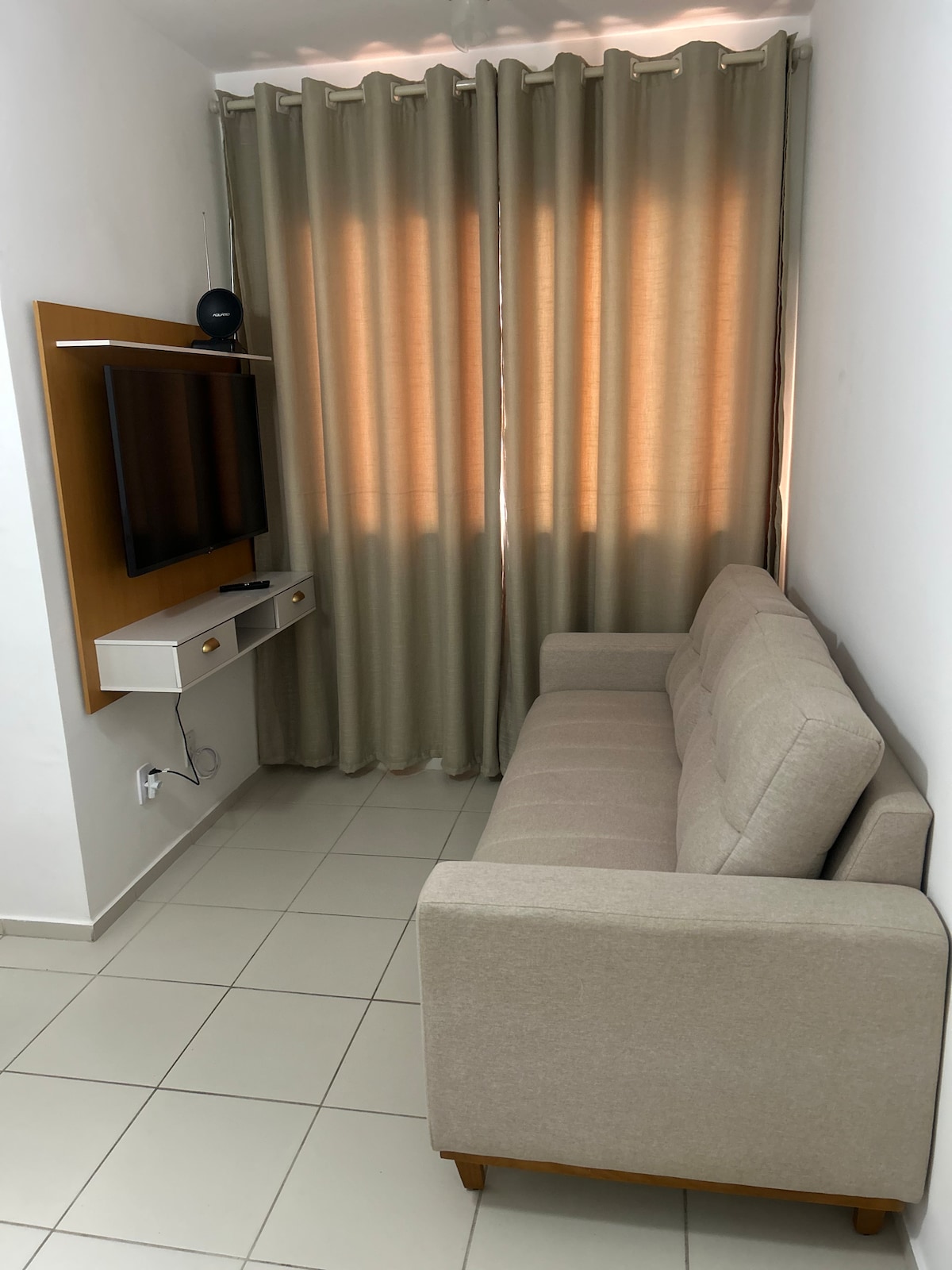 Apartamento novo, aconchegante e todo mobiliado. Possui 2 quartos: um com cama de casal, armário, split e tv smart 32 polegadas e outro com cama de solteiro, armário, split e bancada. Cozinha completa com utensílios domésticos. Sala ampla c/mesa, 4 cadeiras, tv smart 42 polegadas, split e varanda. Área de serviço com máquina de lavar, varal de chão e tanque. Garagem privativa para 01 carro. Todos os espaços do apartamento são climatizados. Possui internet e wi-fi: 200Mbps.