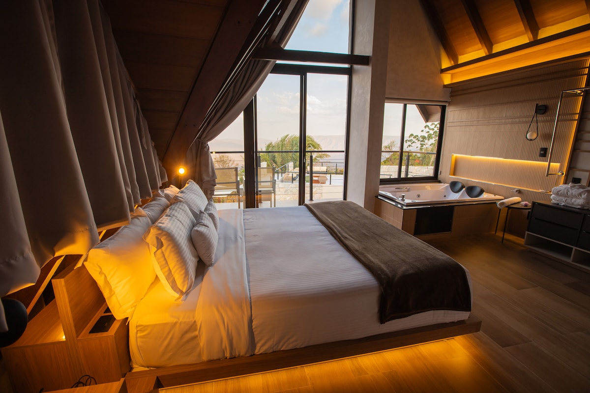 Chalés do Rei (80m² – até 4 pessoas) Um refúgio de charme e conforto! Com suíte master no piso superior para 2 pessoas, cama king-size, banheira de hidromassagem com cromoterapia e varanda privativa, os Chalés do Rei combinam luxo e aconchego. Sala ampla com lareira ecológica, sofá-cama para até 2 pessoas, cozinha gourmet equipada e banheiro elegante com amenities premium. Varanda lounge com vista para a serra, Wi-Fi, ar-condicionado e TV 65" com Netflix inclusa completam a experiência.