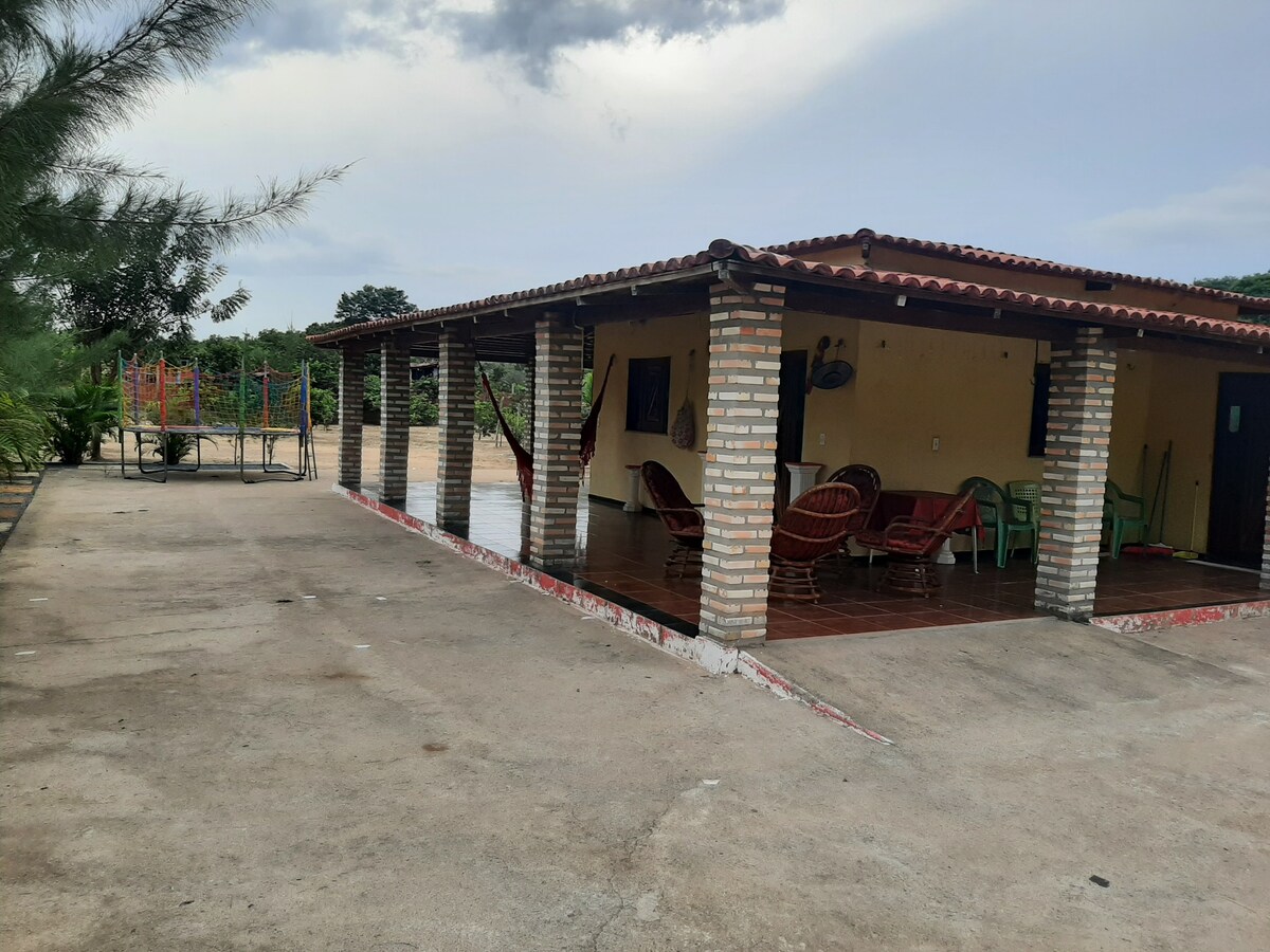 Casa na Lagoa do Sobradinho, inspirada na região italiana da Toscana, perto da praia de Macapá em Luis Correia-PI, ideal para hospedagens e eventos como casamentos, aniversários, retiros, etc. Seu reencontro com a natureza e paz interior!!Lugar perfeito para fotos, com paredes em pedra medievais, piso terracota e muita madeira rústica, criam o cenário ideal pelo verde abundante de seus jardins e pelo brilho que reluz sobre as dunas que margeiam o lago. Tudo isso com um pôr do sol que emociona!!