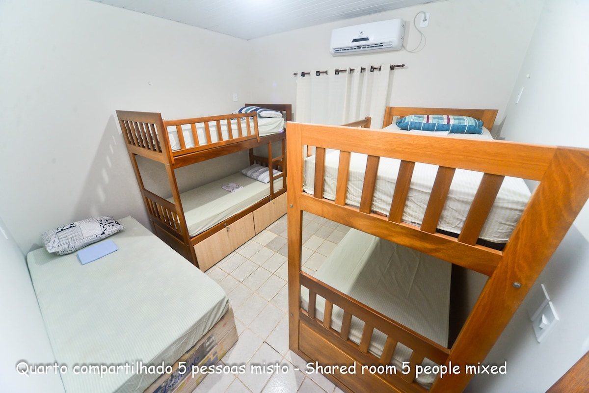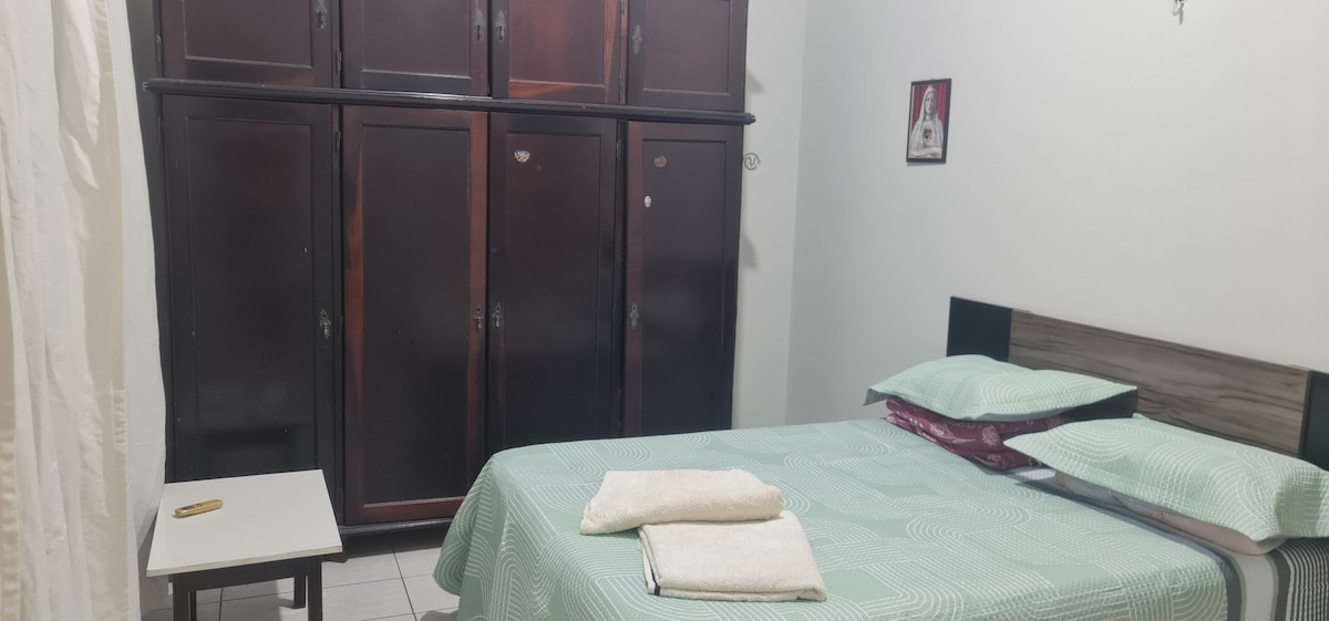 O espaço é bastante amplo e a área de convivência é aberta, com muito verde... um amplo estacionamento... coqueiros, mangueiras, limoeiros, ciriguelas são algumas das fruteiras no local. O espaço é privativo aos hóspedes e exclusivo para a quantidade informada no momento da reserva. Visitas são aceitas mediante taxa adicional e combinado previamente com os anfitriões.