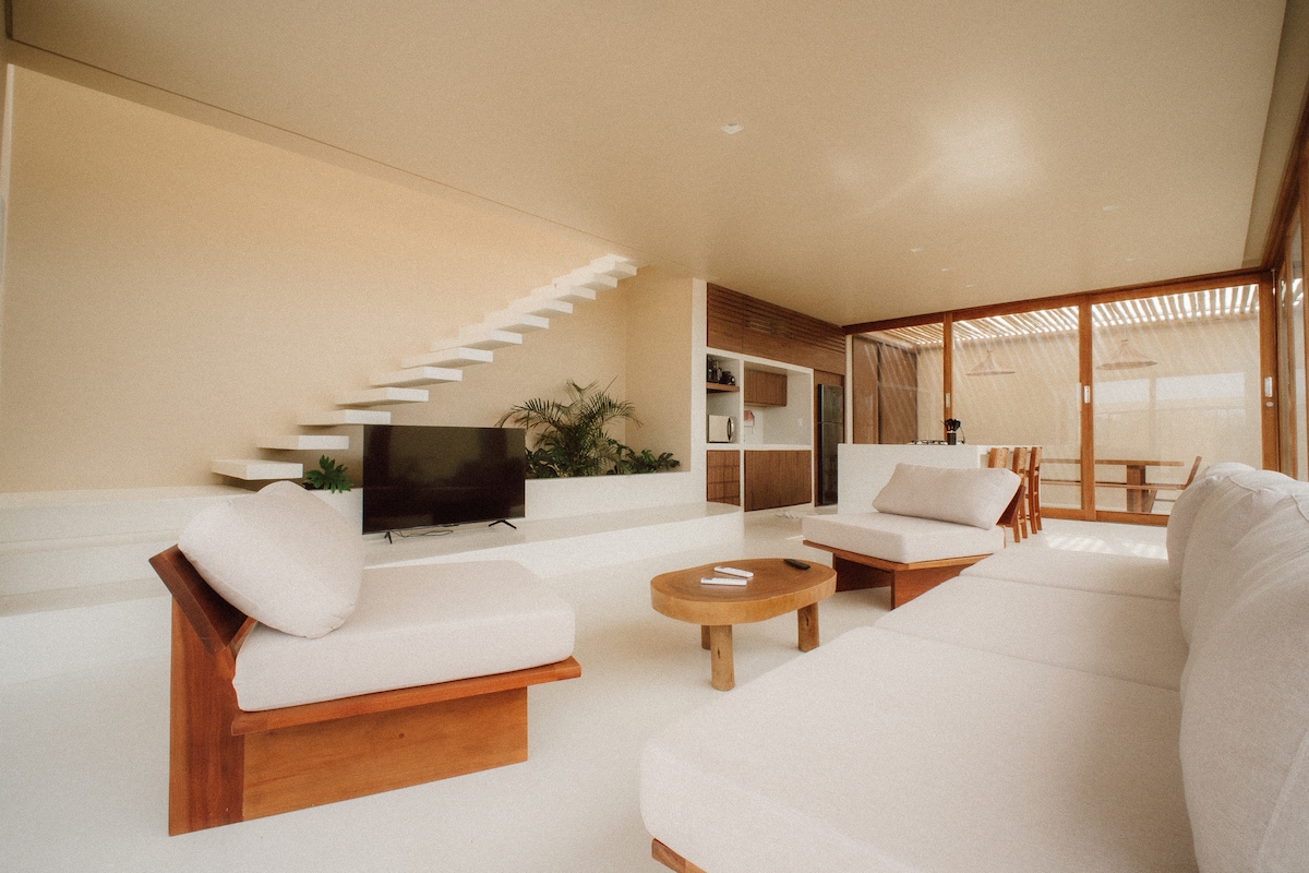 The Sunny Kite House is located in the Coconut Beach Residence in Praia do Preá. Coconut offers a fantastic infrastructure with a club, two swimming pools, beach tennis courts, a playground for children and exclusive access to the beach. Experience a cozy-warm stay located 400 meters from the beach, with three well-equipped suites, excellent Wi-Fi, full kitchen, barbecue, steam room and jacuzzi.