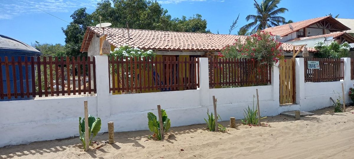 Natural , simples e reservado. Uma casa gostosa para se sentir a vontade perto do mar. Um quarto com cama de casal, banheiro privativo, mini cozinha privativa com fogão e geladeira. Quintal com pia, sombra de um pé de acerola e coqueiro com vista pras dunas e pro mar, e um tanque de lavar roupas. Mesas e redes externas. Compatível com home office a solicitar mesa e cadeira no quarto ou na área externa. E cozinha completa para compartilhar com os anfitriões em horário comercial.