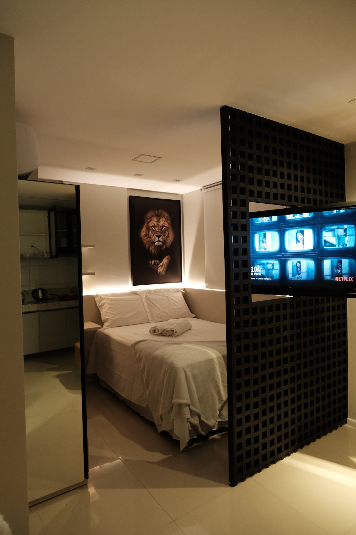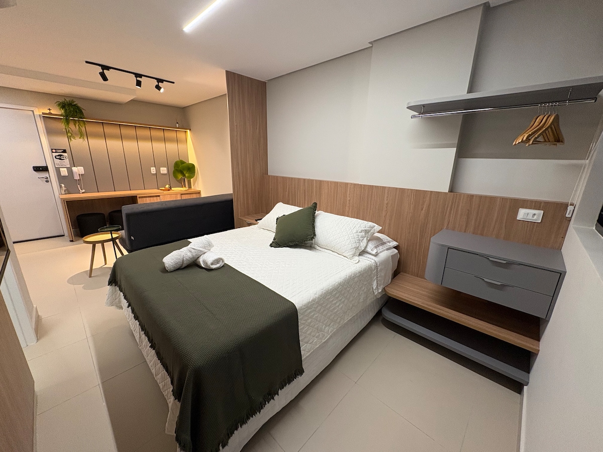 Um estúdio executivo onde sofisticação, conforto e eficiência se encontram. Design elegante, Wi-Fi rápido, estação de trabalho e localização estratégica. Ideal para até 2 hóspedes que viajam a trabalho e não abrem mão de privacidade, bom gosto e performance.