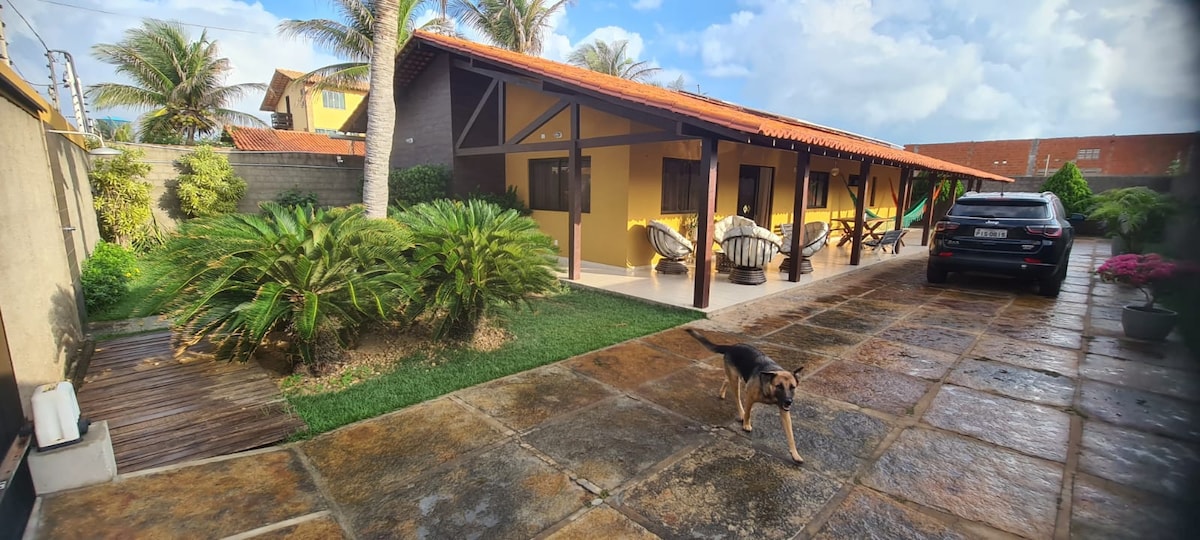 Casa a 700m da Praia, com uma piscina, TV Smart e espaço para hospedar confortavelmente 8 pessoas. Quartos com ar-condicionado. Casa Pet Friendly. Você possui nesse espaço uma enorme área verde e livre para estacionar diversos carros, redário, churrasqueira, pergolado com visão privilegiada para o nascer e por do sol, área para colocar barracas, fazer luais e festas particulares, espaço para descansar feliz com família e amigos. Área de lazer compartilhada entre os hóspedes da casa e dos lofts
