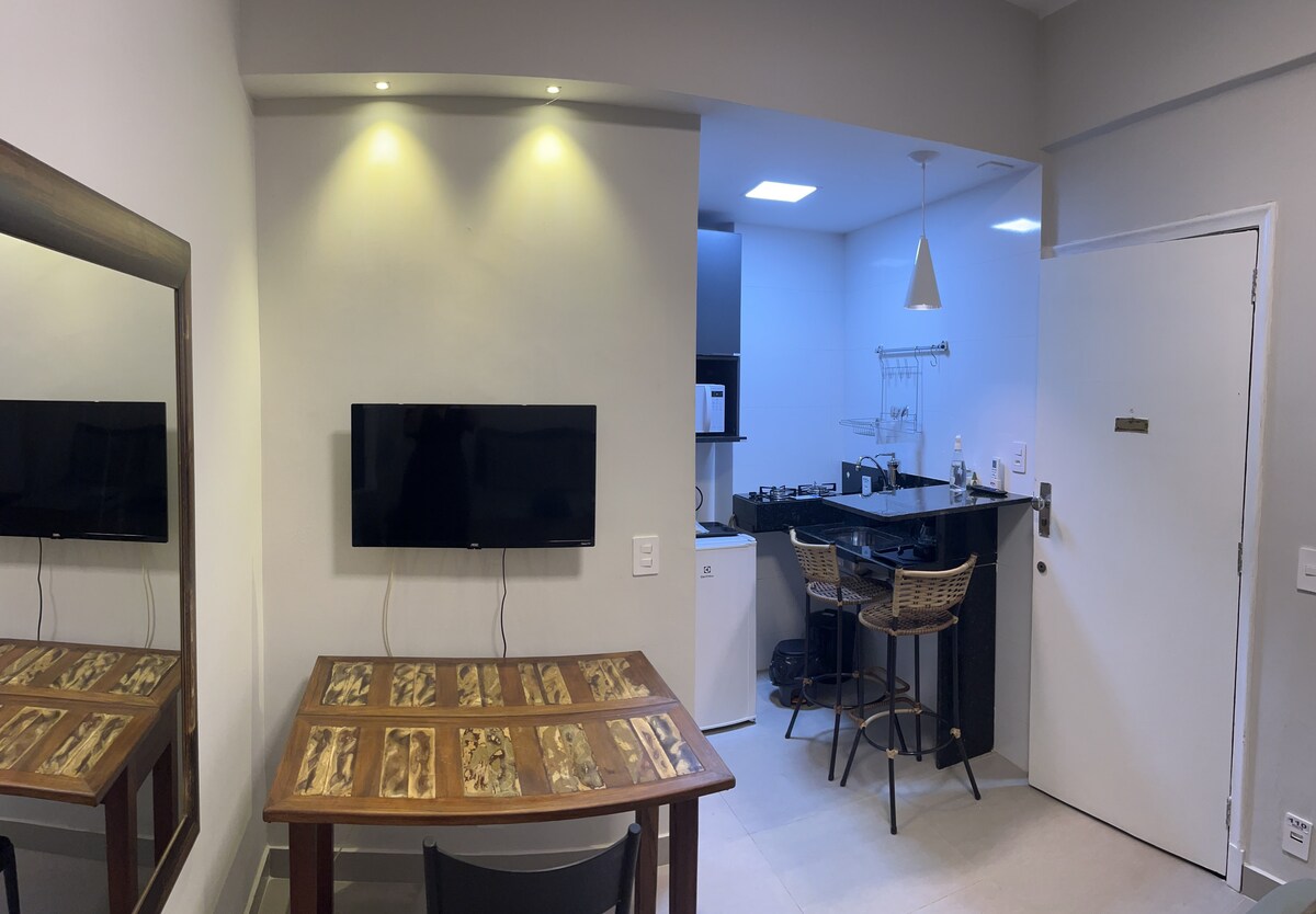 Apartamento fundos (loft) , recém reformado. Possui Smart-TV, wifi 5g de 250mb, tv a cabo, acesso ao Netflix/DisneyP pela Tv (conta não inclusa), ar-condicionado e ventilador de teto. Cozinha com microondas, torradeira, sanduicheira, geladeira, cafeteira normal e Nespresso (sem capsulas), fogão, panelas, copos, pratos e talheres. Roupa de cama e toalha de banho incluída. A 8 min do Metro e a 3 min da praia e com infraestrutura perto (lavanderias, mercados, restaurantes e etc).