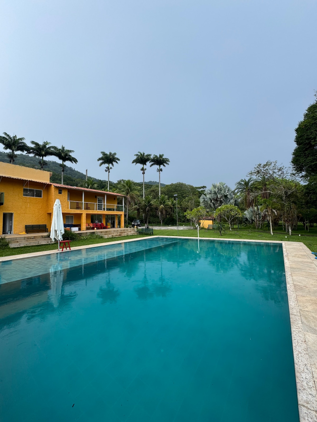 Suíte independente com vista de jardim e piscina. Área externa exclusiva do quarto com mesa de refeições e lounge. Com decoração aconchegante e AC silencioso, frigobar e estação de café no quarto. A Piscina é gigante, 14 metros, e o jardim comum a todos os hóspedes. Estacionamento 24 horas gratuito Café da manhã disponível sob pedido Perto das praias mais bonitas do Rio de Janeiro, este é um verdadeiro oásis escondido em Guaratiba, a 10 min do recreio e a 25 min da praia do Grumari e da Prainha.
