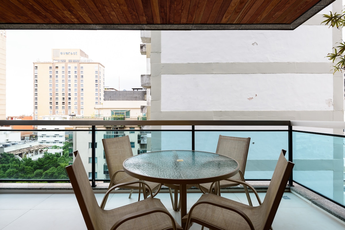 Conforto, estilo e uma varanda privada com uma vista de tirar o fôlego! Selfie check-in e check-out. Portaria 24 horas e serviço de guarda malas gratuito. O andar alto e as janelas com proteção acústicas garantem o silêncio interior. Hóspedes têm acesso à piscina do prédio. Ao lado da praia, na praça General Osório, coração do bairro, com metrô na porta, bares, restaurantes, lojas. Sem taxa do Airbnb, nós pagamos por você! O Flat tem serviço de limpeza diária.