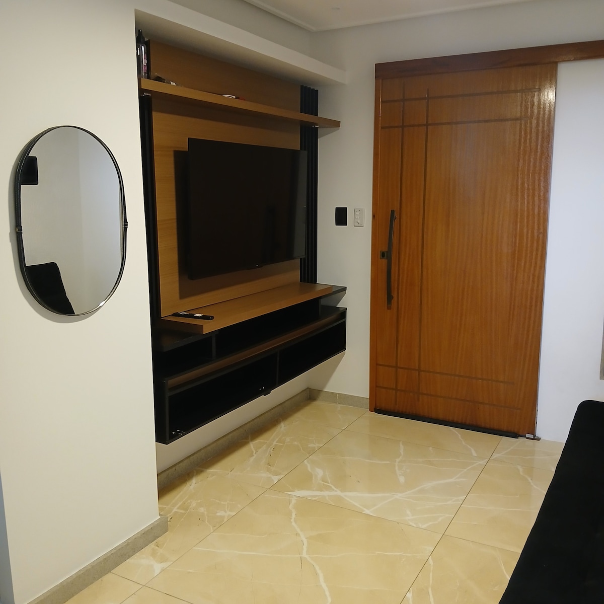 Feel the comfort and sophistication of this modern apartment in Barra Olímpica. With a balcony offering spectacular views of the Barra skyline and mountains, the space is perfect for relaxation. The master suite features premium bedding, and the living room converts into a bedroom. The open-concept kitchen with an exotic marble island adds to the elegant design. Spacious, airconditioned, and powered with highspeed internet, 2 full baths, beach essentials, 2 bikes, and more for your convenience.