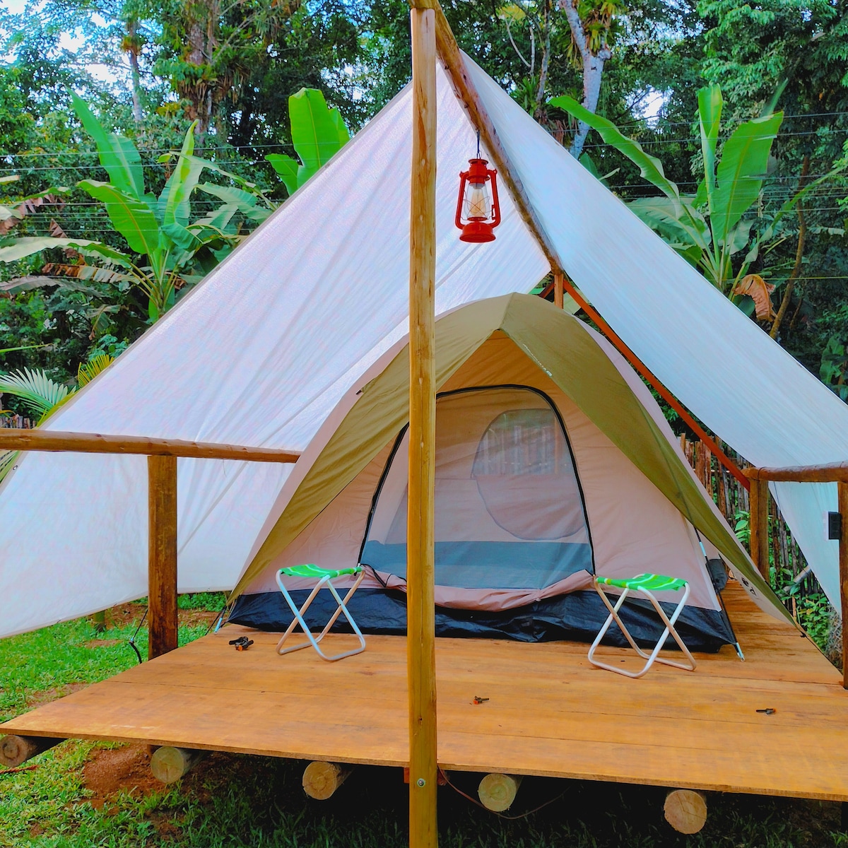 🍀Smart camping : Conexão máxima com a natureza 💚 Viva a experiência de acampar ao lado do riacho com todo conforto. Descrição: ✅Barraca de camping.montada para 3 pessoas, cabe confortavelmente 2 pessoas. ✅Roupa de cama, travesseiro e colchonete de casal ✅Utiliza banheiros externos , no total de 4 unidades , sendo dois de sanitário e 2 de banho com água quente ✅Diária com café da manhã incluso