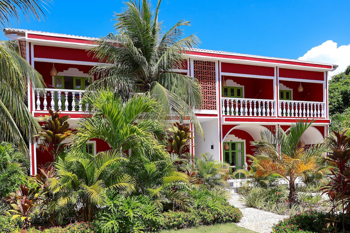 Our location is privileged: close to Praia da Pipa and Praia do Madeiro, we have direct access to Cacimbinhas beach, an almost private beach with stunning cliffs. About an hour and a half from the main airports, Natal and João Pessoa, the village is located in the most privileged area of Pipa: the cliffs area. Relaxe neste lugar único e tranquilo. Relax in this unique and peaceful place.