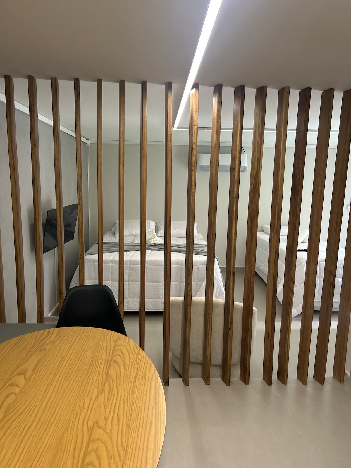 Aconchegante, ventilada e bem iluminada, situada em "Villa La Ribera" um condomínio de 3 casas com amplo quintal, cheio de paz e natureza. Dispõe de ar condicionado, boa internet, escritório com cadeira ergonômica, varanda com mesa, sala com sofá cama, cozinha equipada, 1 banheiro, 1 quarto, 1 pequeno quintal privado e muito conforto ❥ Fica a: 200M da padaria 500M do principal atacarejo 800M da Praia do Amor e do centro Ideal para quem procura um lugar tranquilo, porém de fácil acesso a tudo!