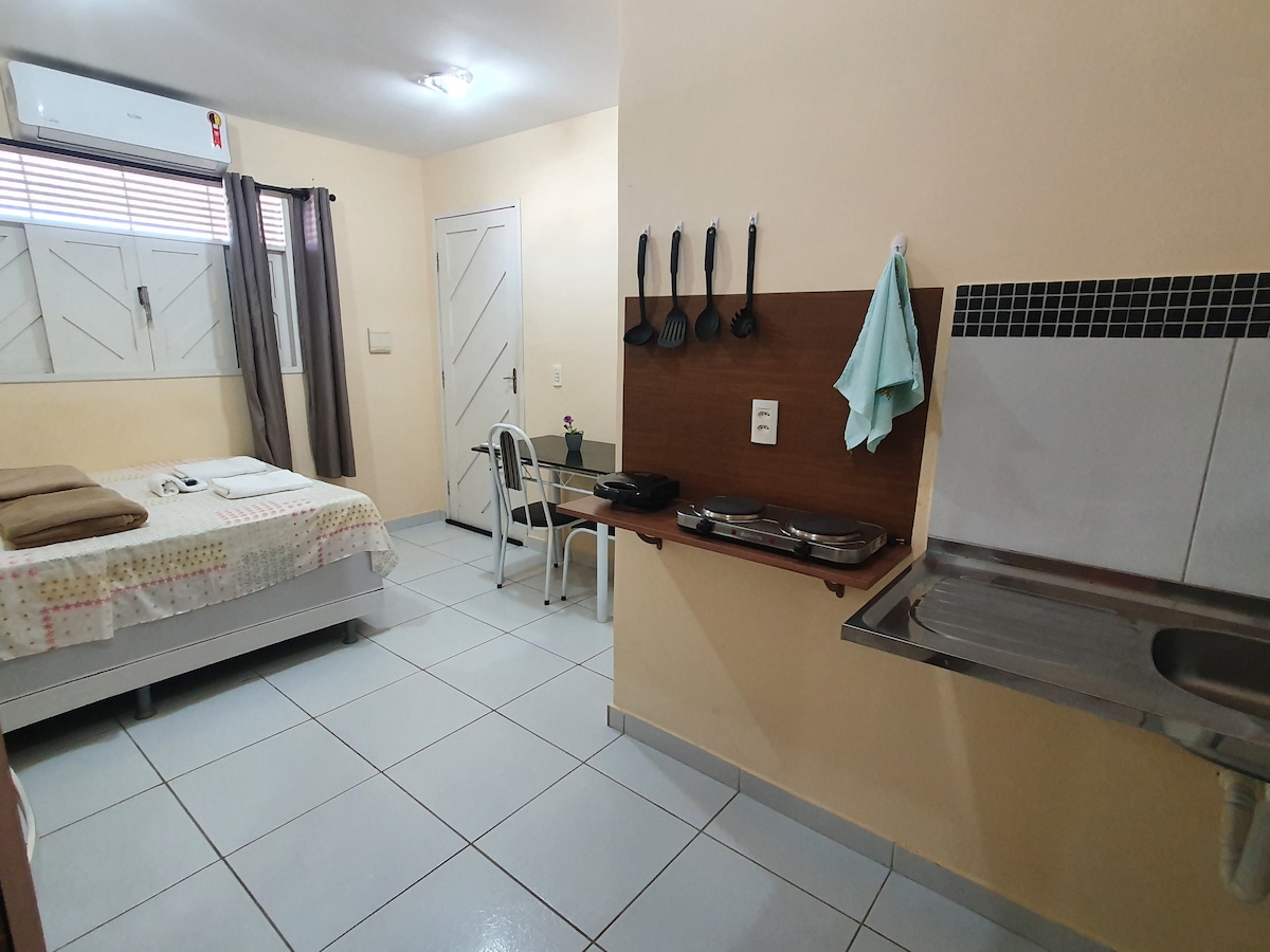 公寓2:小厨房/工作室,带空调和停车场。