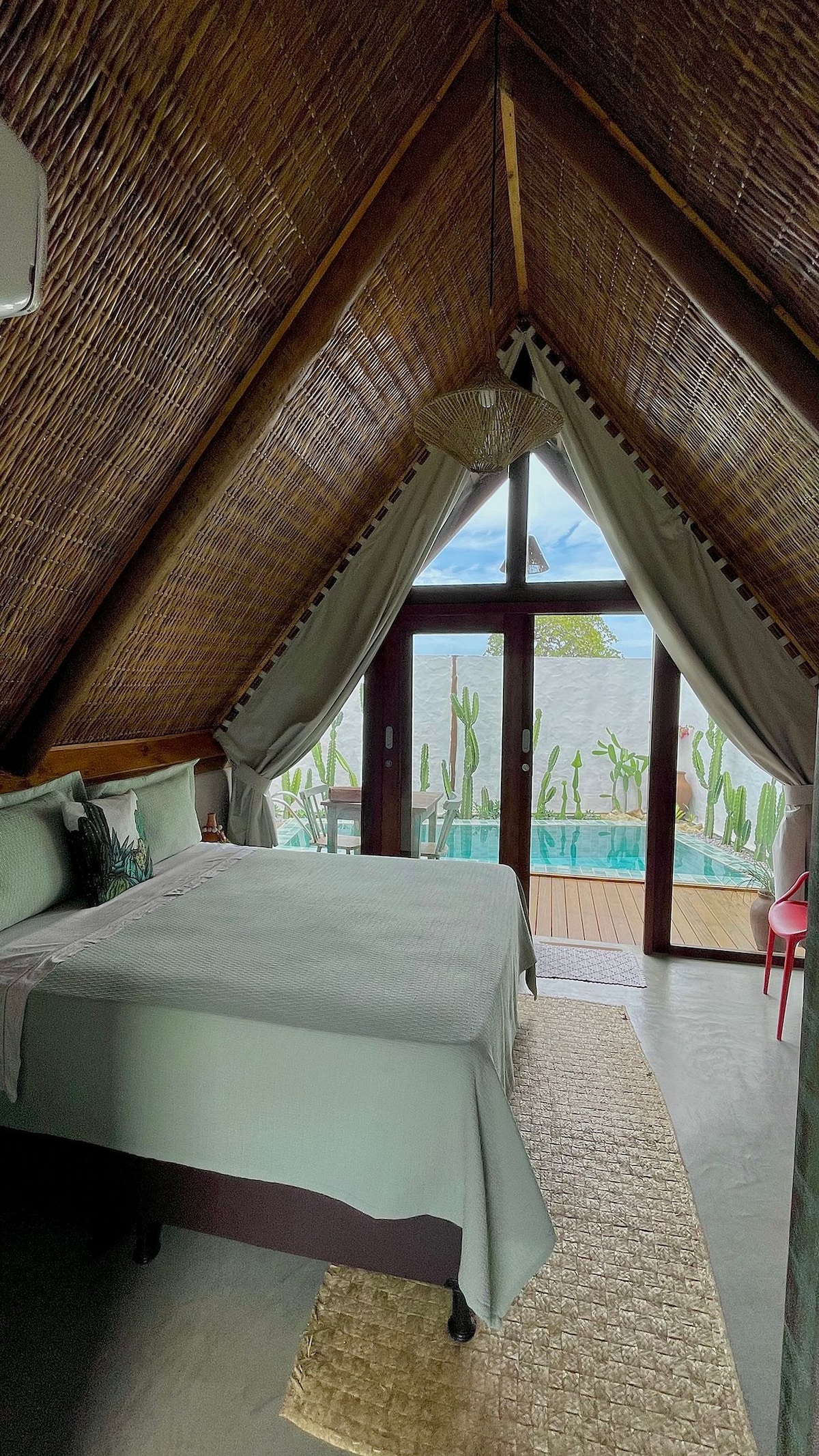 HOSPEDAGEM & SABORES Relaxe neste lugar calmo com estilo numa praia nativa de jangadas coloridas. Ideal para casal.Acesso fácil p praia >20 mts.Cabana c rede , churrasqueira, terraço com toldo parcial.Chuveiro quente interno e frio externo, coz c Cooktop 02 bocas, frigobar, balcão apoio pratos talheres panelas etc Mesa abre e fecha.Cama colchão alto, lençóis 180 fios algodão, manta, travesseiros, toalhas grandes de banho. Paredes duplas sol tarde, manta térmica no telhado. NÃO ESQUENTA