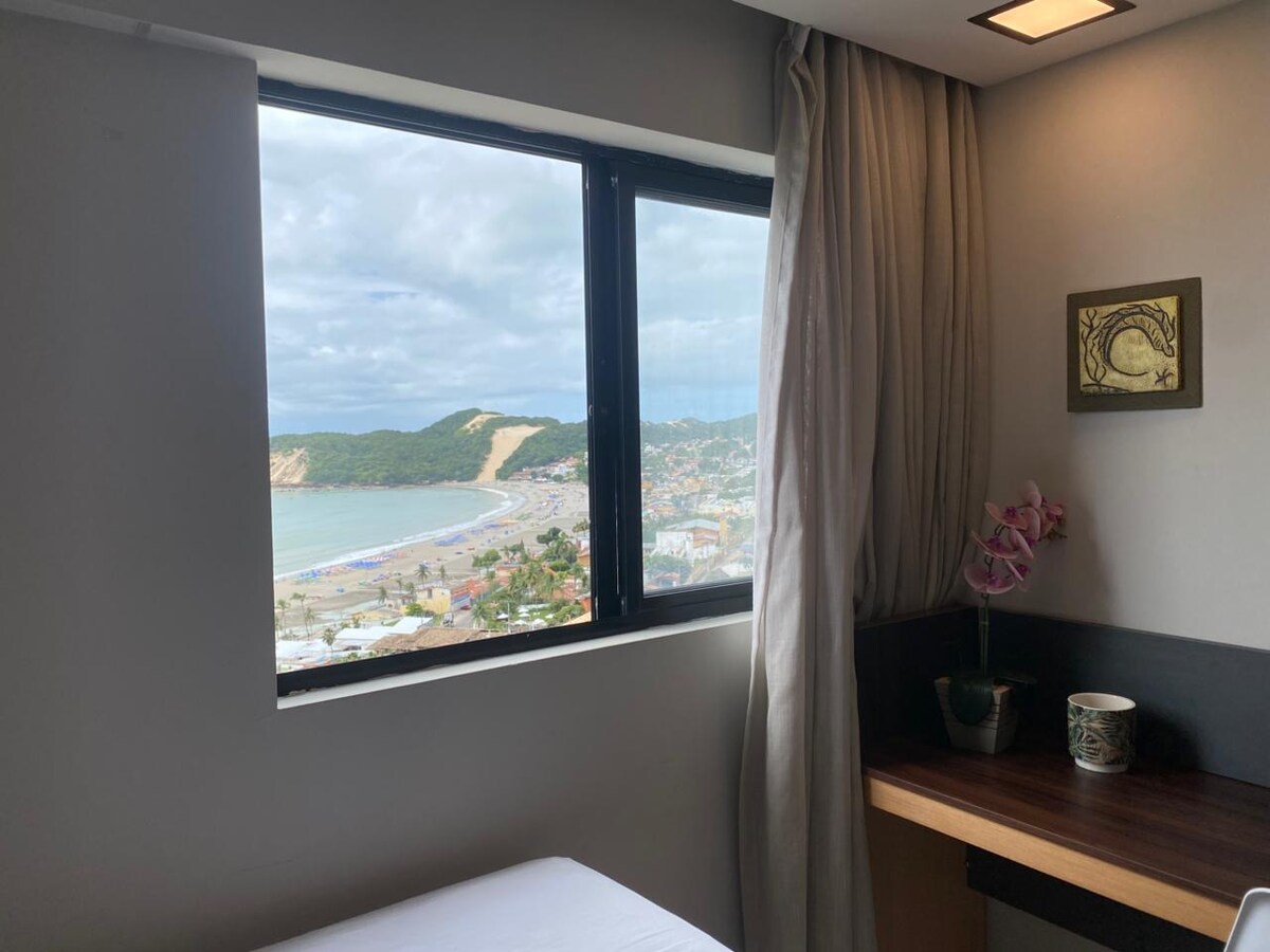 Desfrute de uma vista deslumbrante para o azul infinito do oceano e o icónico cartão-postal da cidade o Morro do Careca a partir do conforto e elegância do nosso quarto. Relaxe com a brisa do mar e a beleza da cidade como sua tela de fundo, uma experiência inesquecível espera por você.