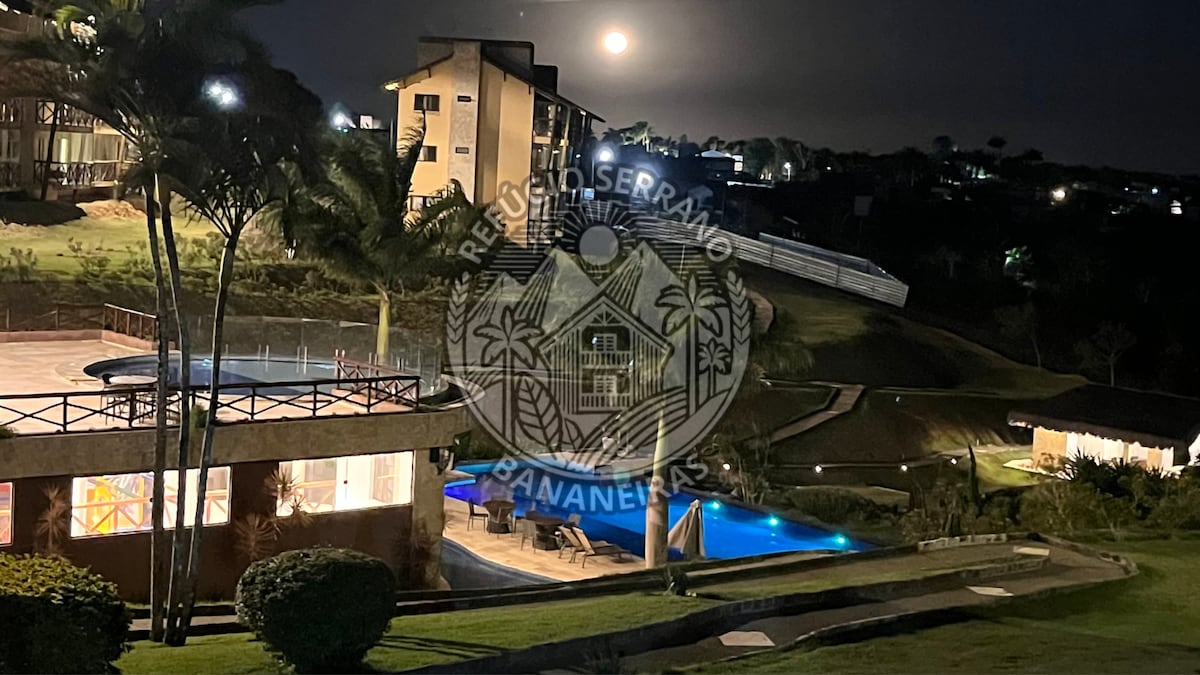 Casa de campo aconchegante com jardim de palmeiras e decoração rústica no condomínio Águas da Serra, um dos melhores da região, ideal para famílias e crianças. Em frente ao campo de golfe, a casa conta com 2 suítes e 2 quartos, todos com ar-condicionado. Uma das suítes tem smart TV. Roupas de cama e banho, Wi-Fi, cozinha completa e área gourmet com churrasqueira. Amplo jardim, parquinho e varanda com redes. A 5 min do centro, perto de mercados e restaurantes.