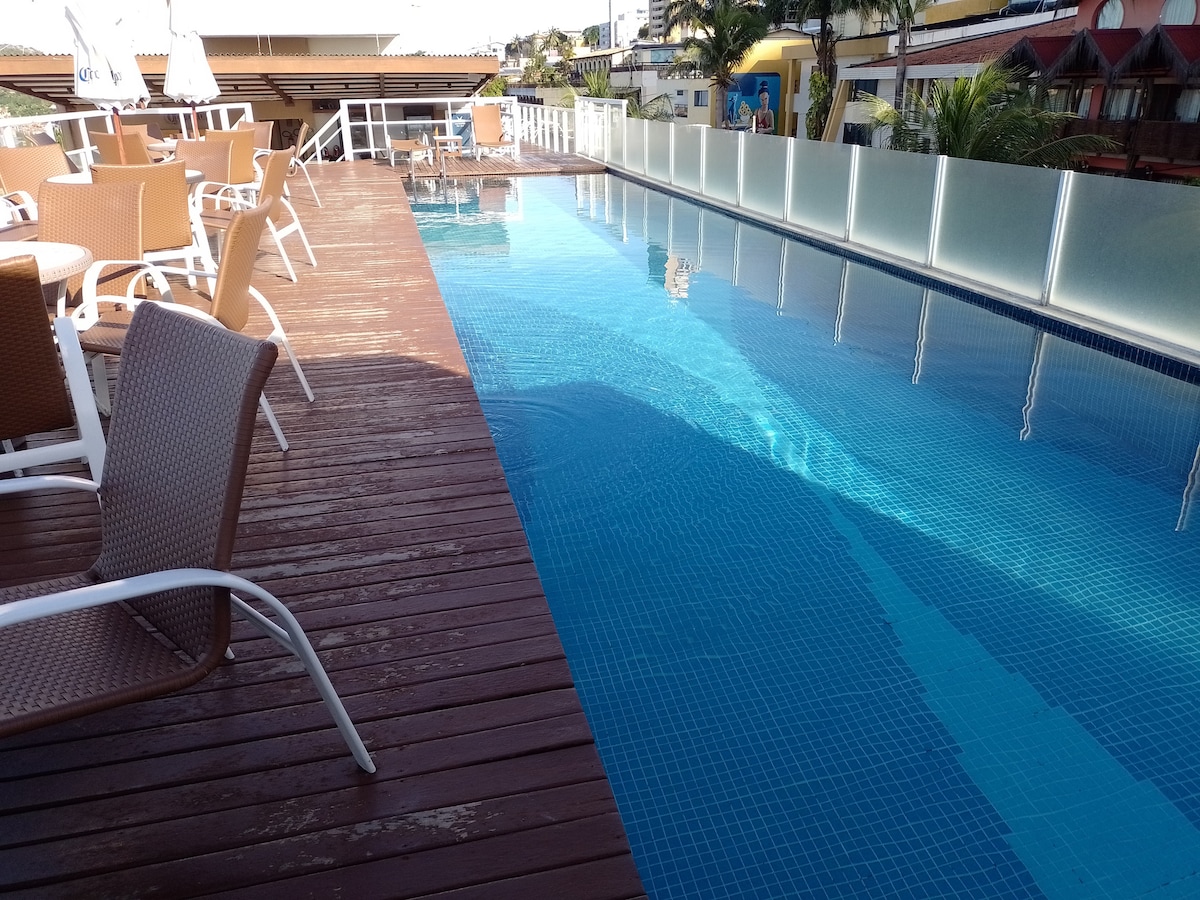 Full furnished flat in the best location of Ponta Negra Beach. near the best restaurants and bars. Full kitchen with stove, oven, microwave and drinks fridge. Air condicionating, smart tv, queen bed, wich is extremely comfortable. Bathroom with hot water, scottish shower, vertical hydromassage and blue light for relaxation. two surf boards. 24 hs concierge and parking space.