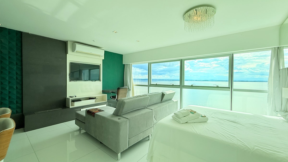 Viva uma experiência única neste estúdio acolhedor e elegante, projetado com atenção aos detalhes para oferecer conforto, funcionalidade e muito estilo. O ap azul planejado é um diferencial exclusivo, com iluminação suave e decoração pensada para relaxar, móvel inteligente e versátil que se transforma em mesa de jantar ou apoio para cozinhar — perfeito para quem valoriza funcionalidade. Piano digital disponível para relaxar, praticar ou se inspirar. Smart TV, Wi-Fi.