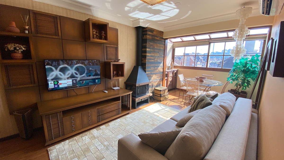 Magnifico apt em condomínio exclusivo à cinco 5 min de caminhada da famosa rua coberta. Venha momentos inesquecíveis em um apt charmoso com total infraestrutura, junto à natureza, com lareira, ar condicionado quente e frio, exatamente o conforto que você merece para desfrutar o melhor da Serra gaúcha. Seu pet de pequeno porte também é bem vindo!