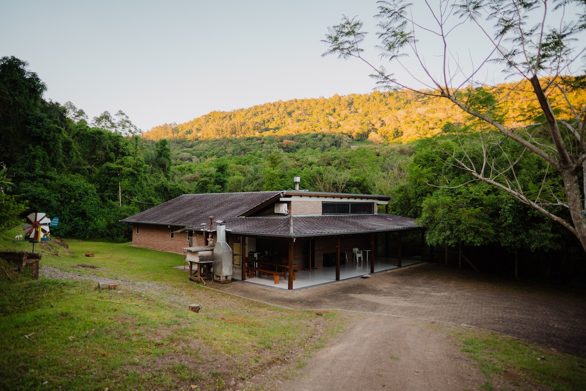 O dia-a-dia na cidade pede um descanso em um local aconchegante com tranquilidade próximo à natureza. Fora do agito da cidade, e com o conforto necessário para se sentir em casa, os hóspedes podem desfrutar de uma casa ampla e completa, com uma encantadora vista para o riacho, que a noite é a trilha sonora perfeita para um bom descanso. O gramado conta com árvores frutíferas da estação à disposição. Aprecie a beleza natural do interior da Serra Gaúcha em um local inesquecível.